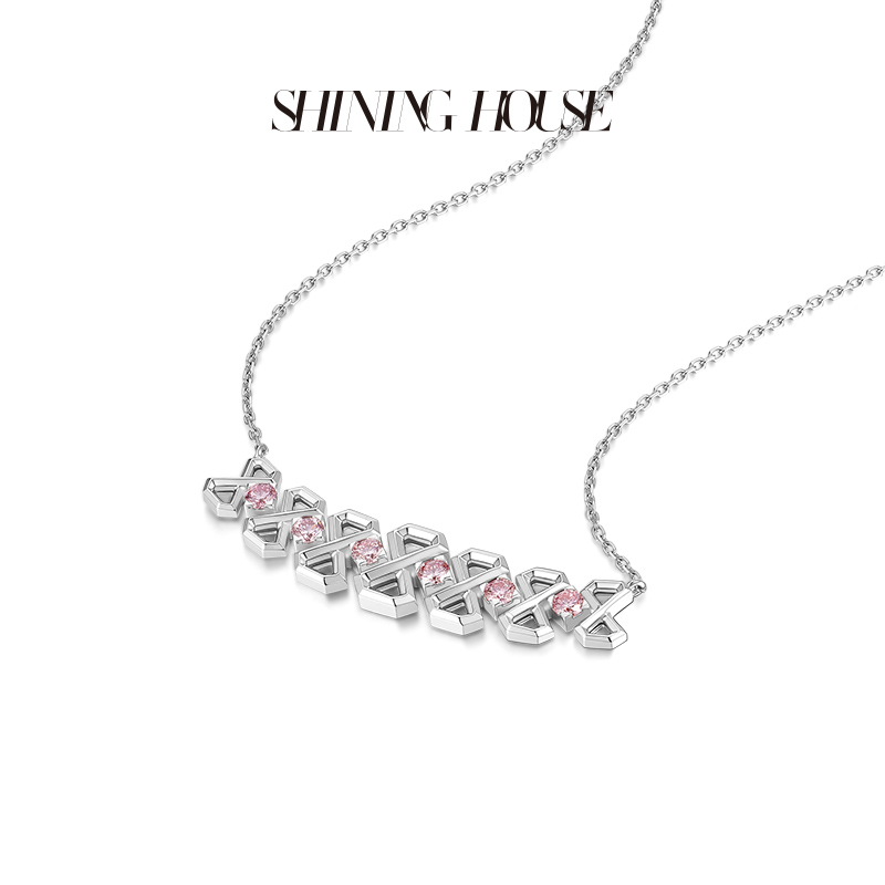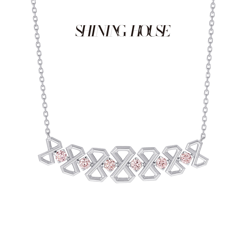 lucky·永恒之环系列ShiningHouse[培育]18k金钻石项链 粉钻 圆钻形人工真钻人造钻石K金项链可调节时尚钻石项链悦己送礼臻选【此商品不支持7天无理由退货退款】预计3日发货