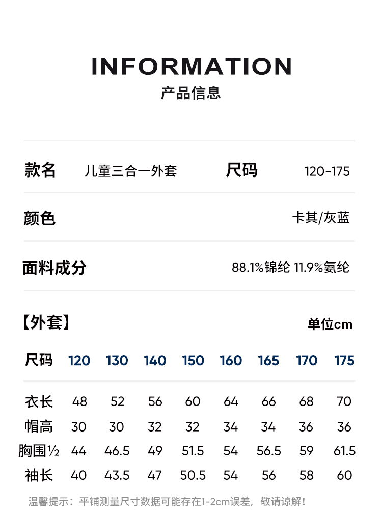 【三合一】【120-165】【纳维凯尔】意大利小帆船男女童三合一保暖冲锋衣外套
