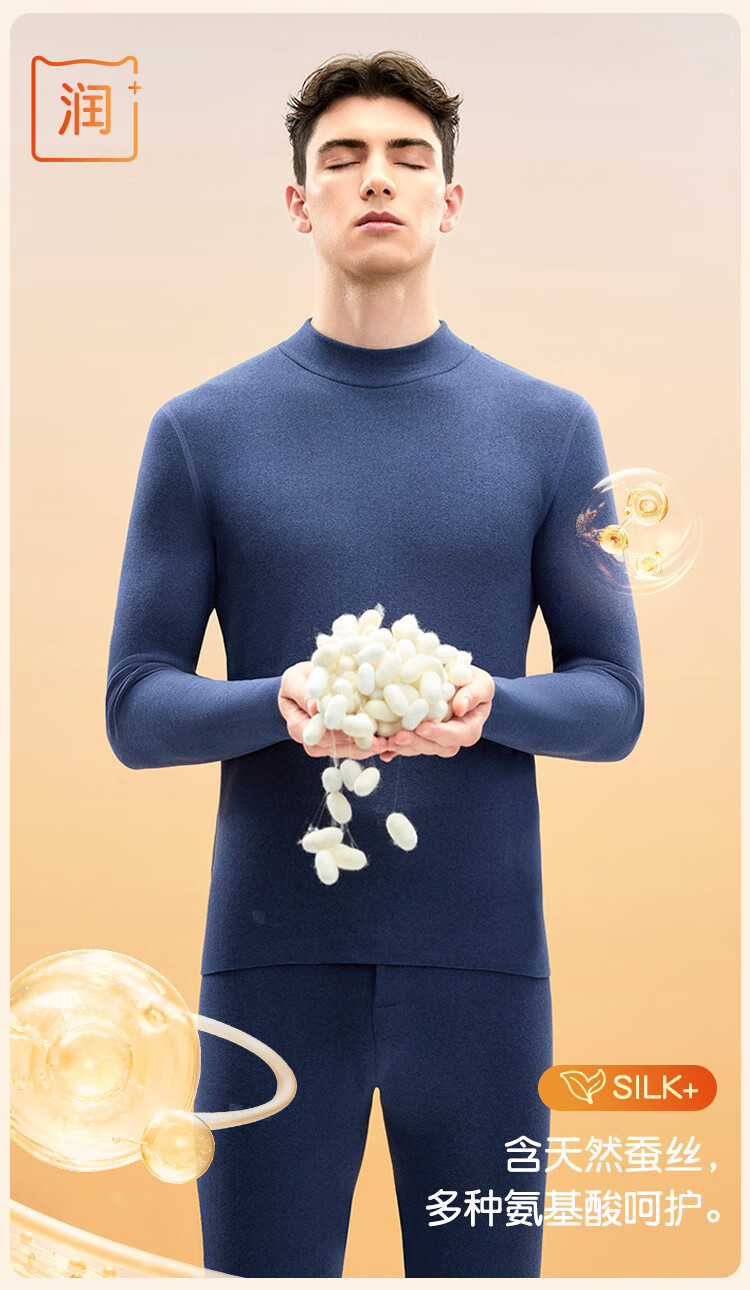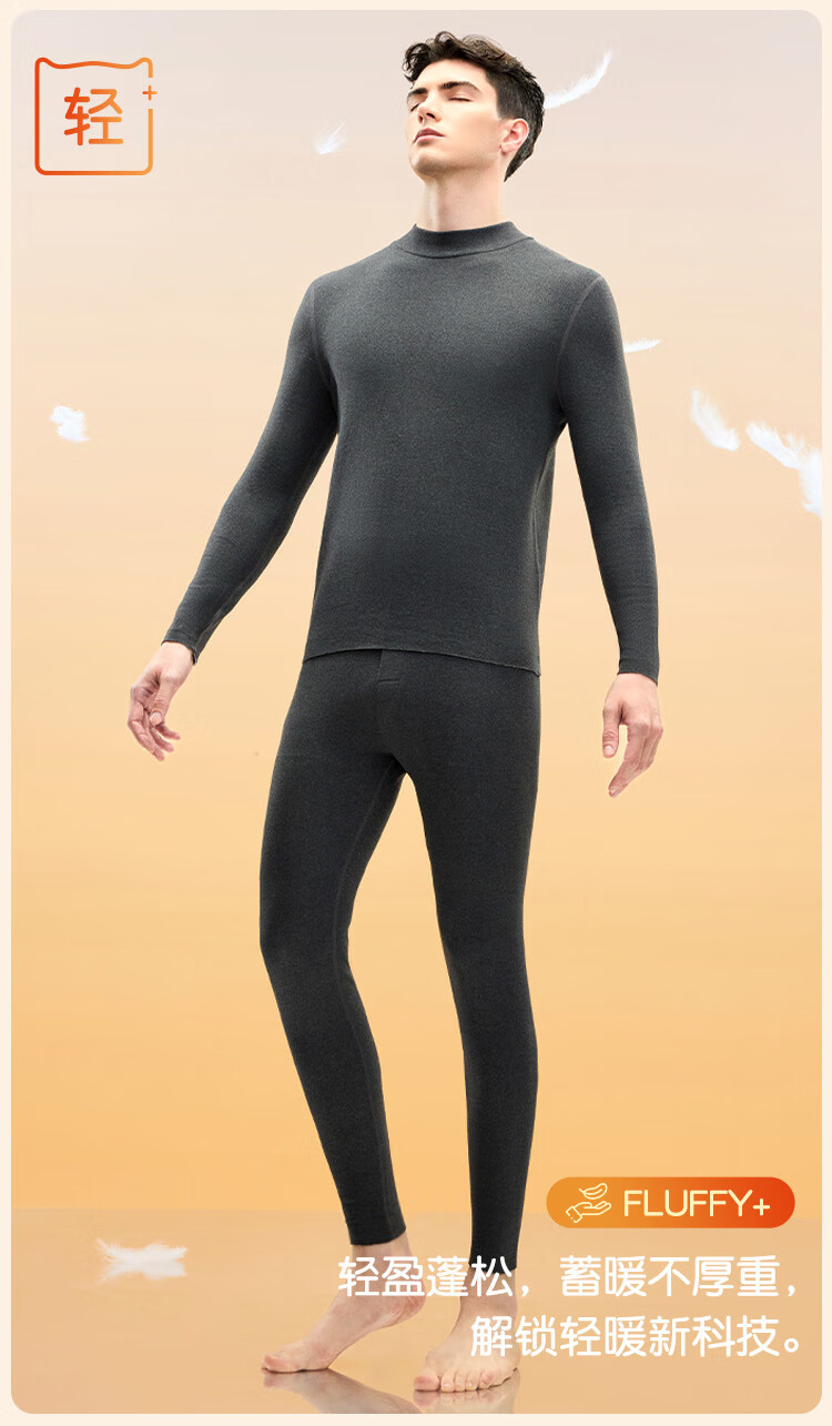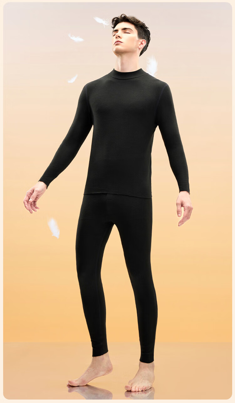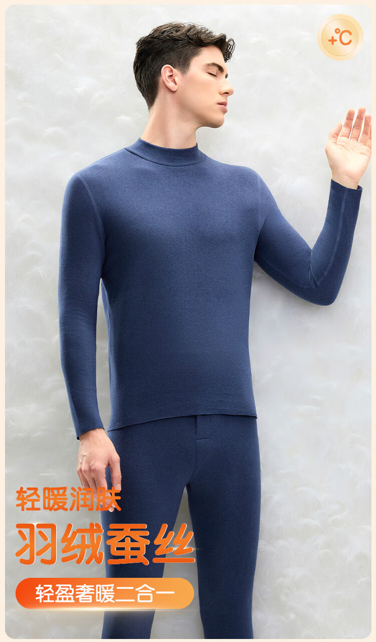 【L-4XL】猫人男士冬款羽绒蚕丝保暖内衣套装