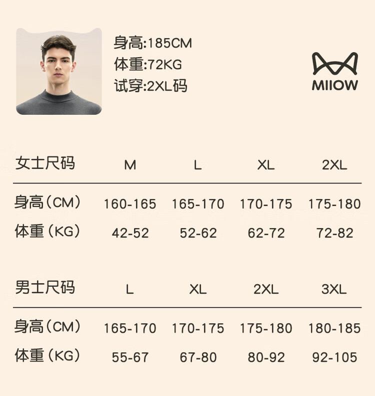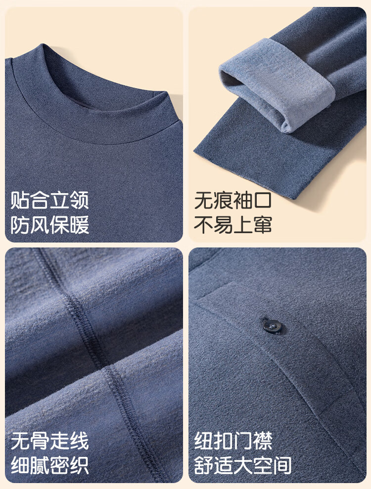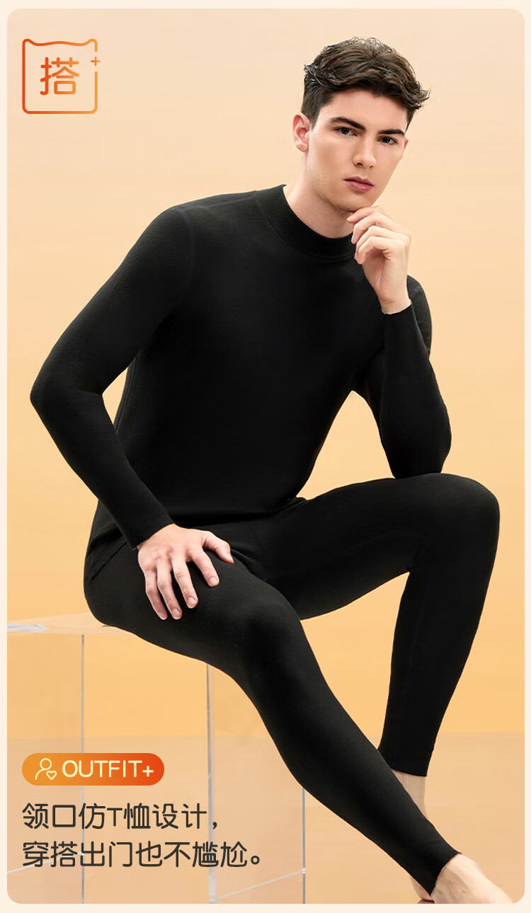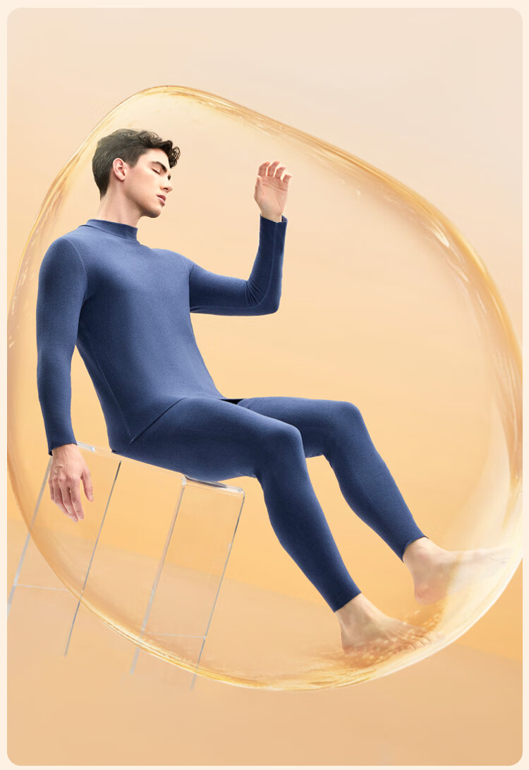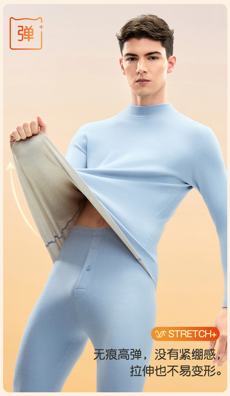 【L-4XL】猫人男士冬款羽绒蚕丝保暖内衣套装