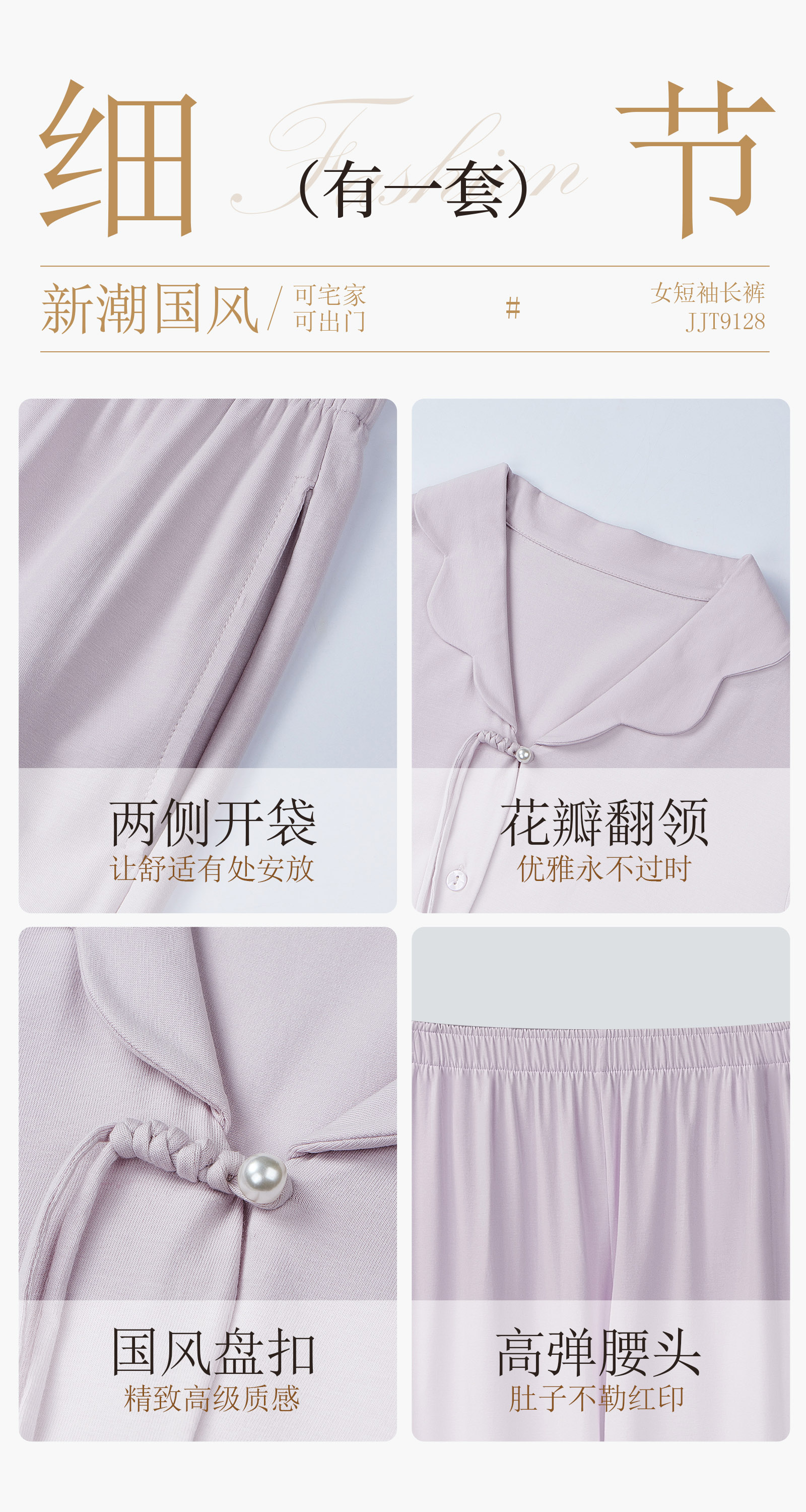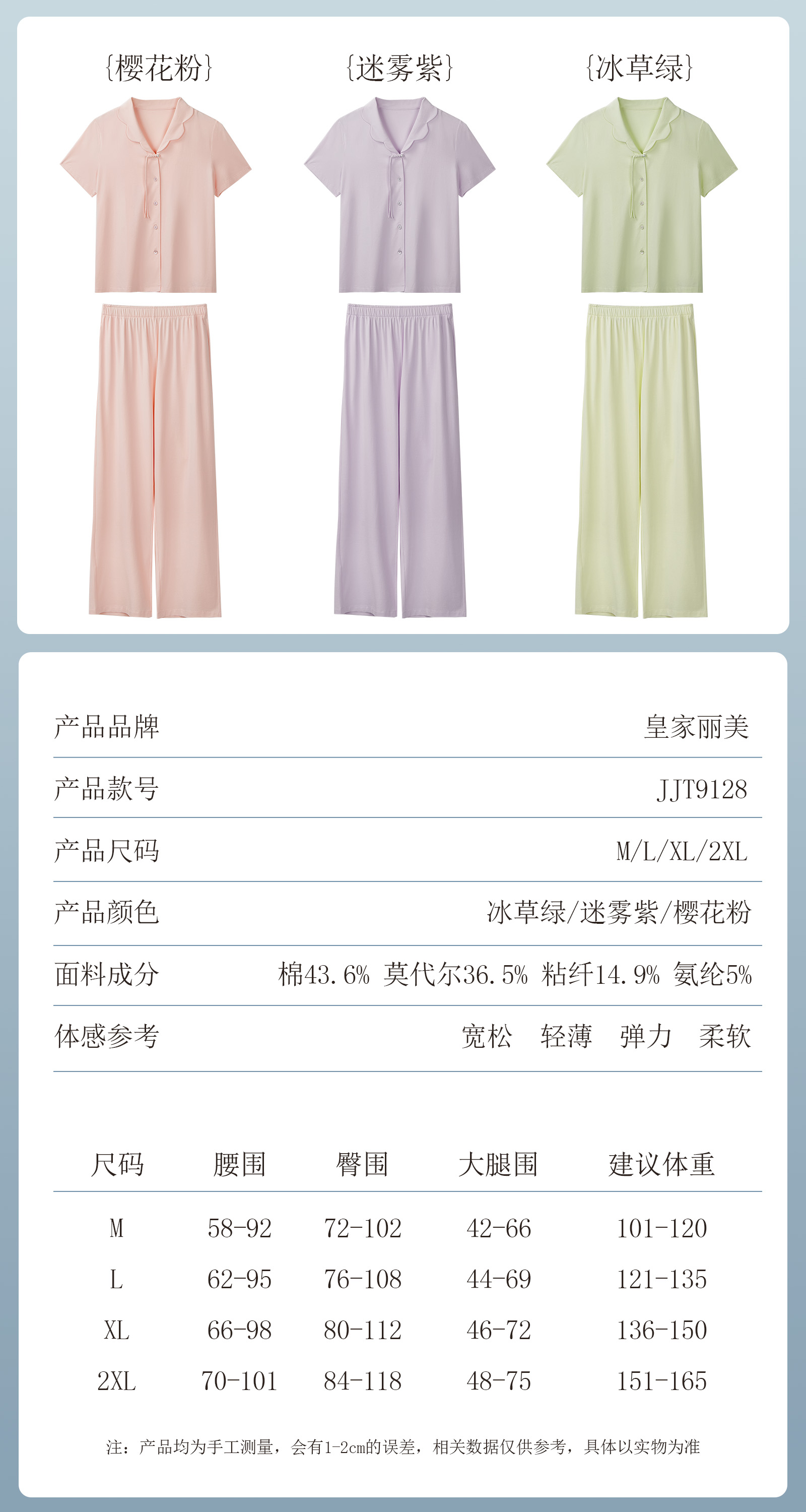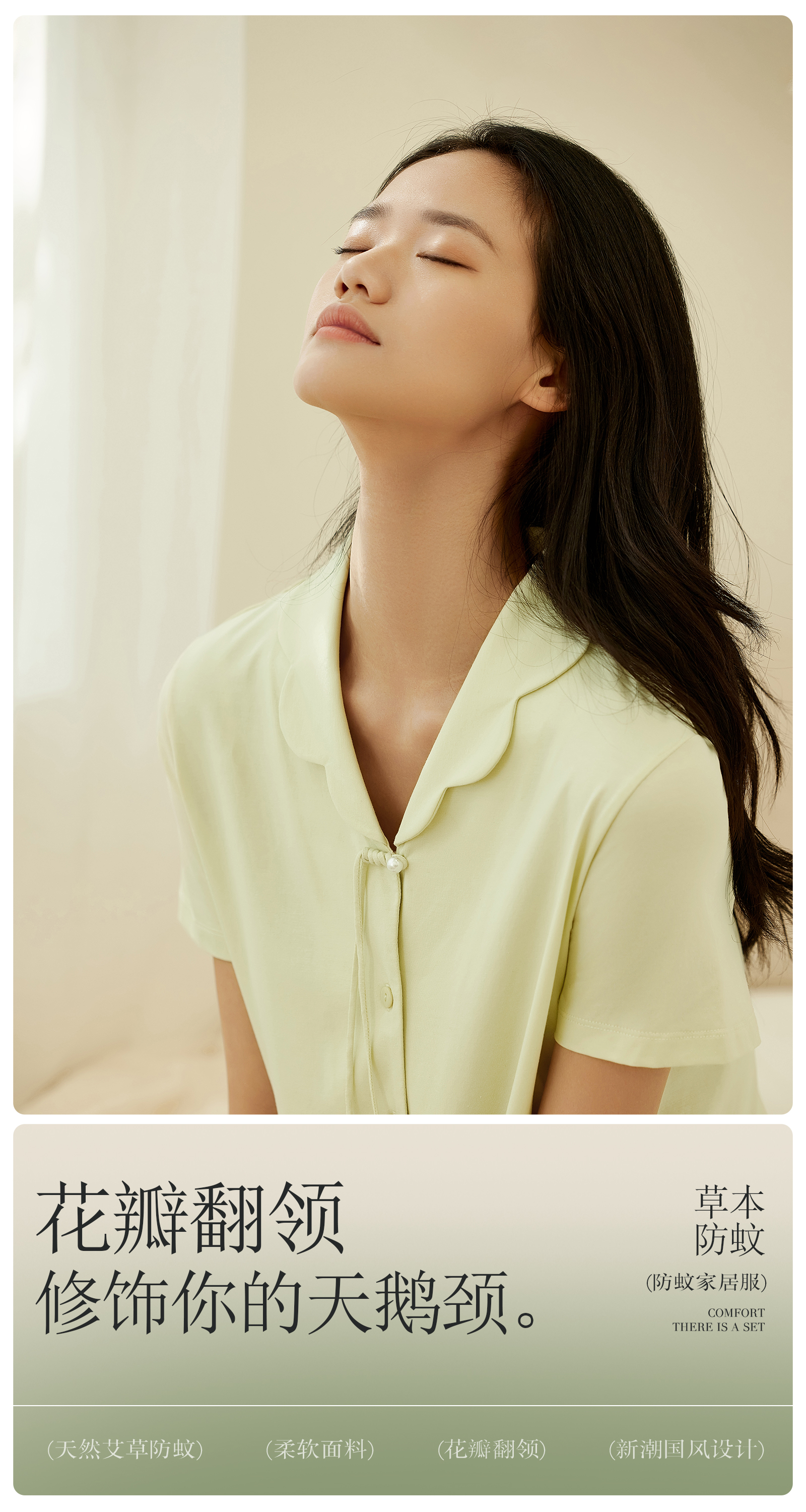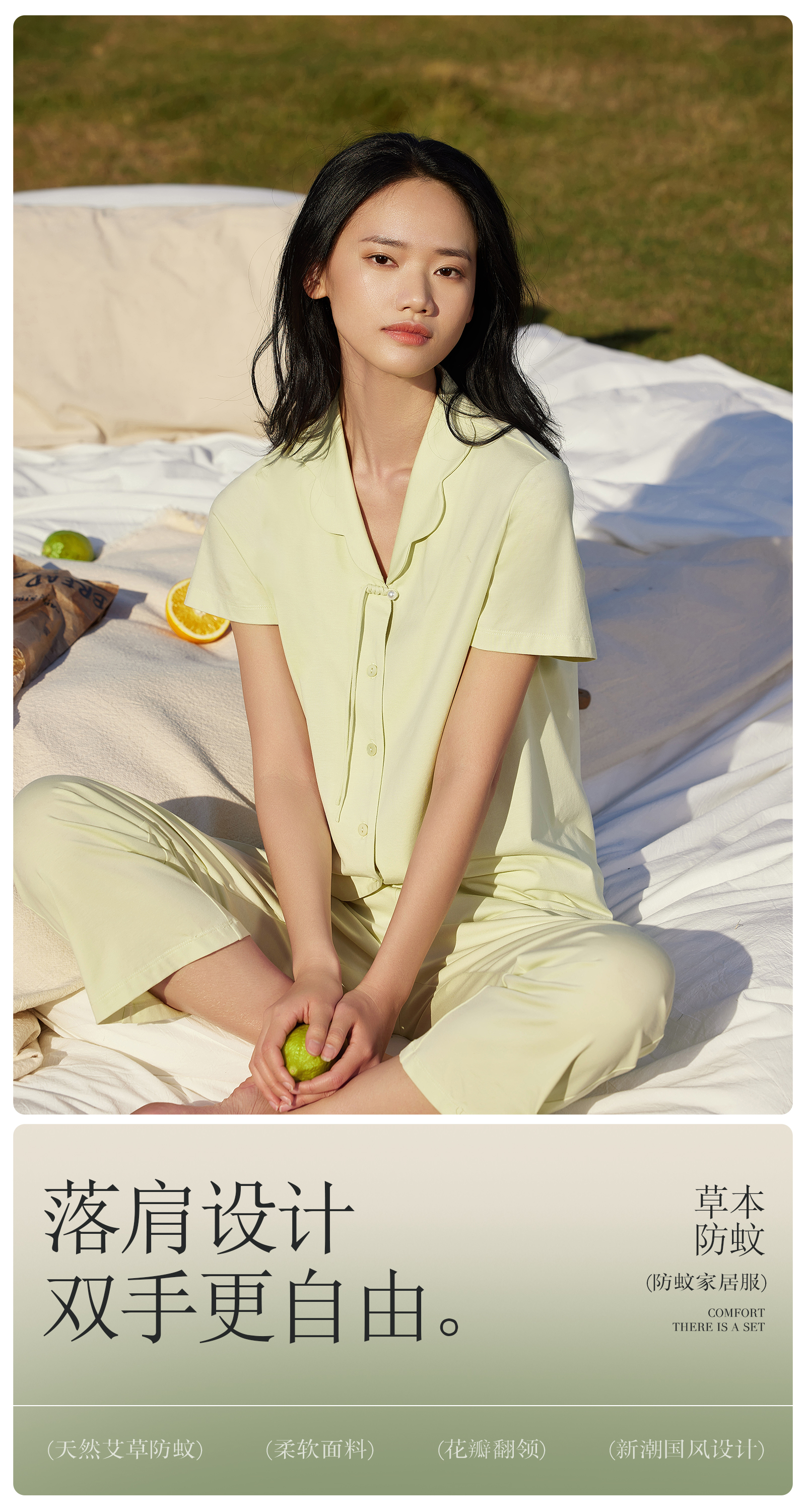皇家丽美国风防蚊莫代尔家居服女款春夏短袖开衫艾草防蚊可外穿套装JJT9128