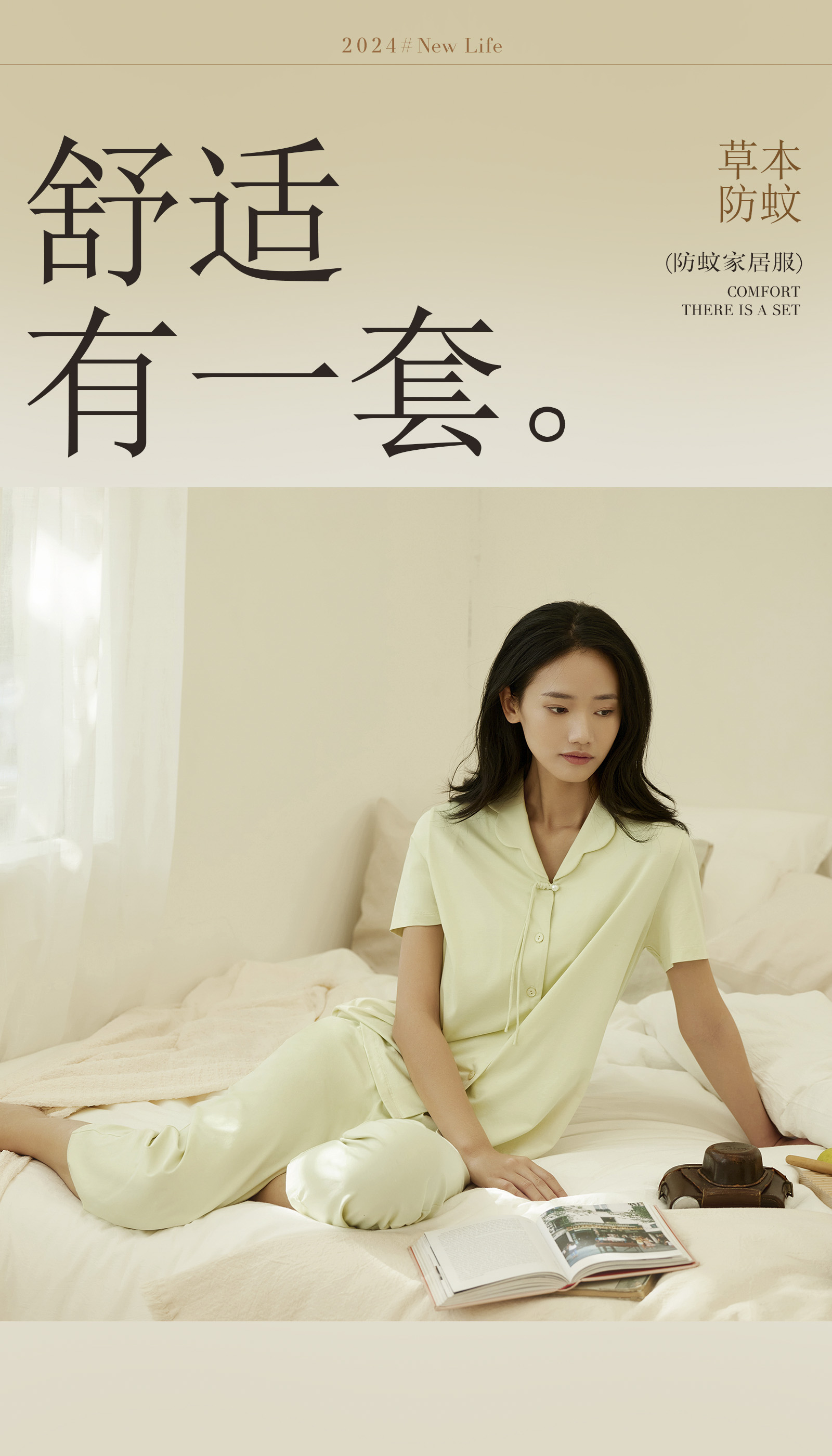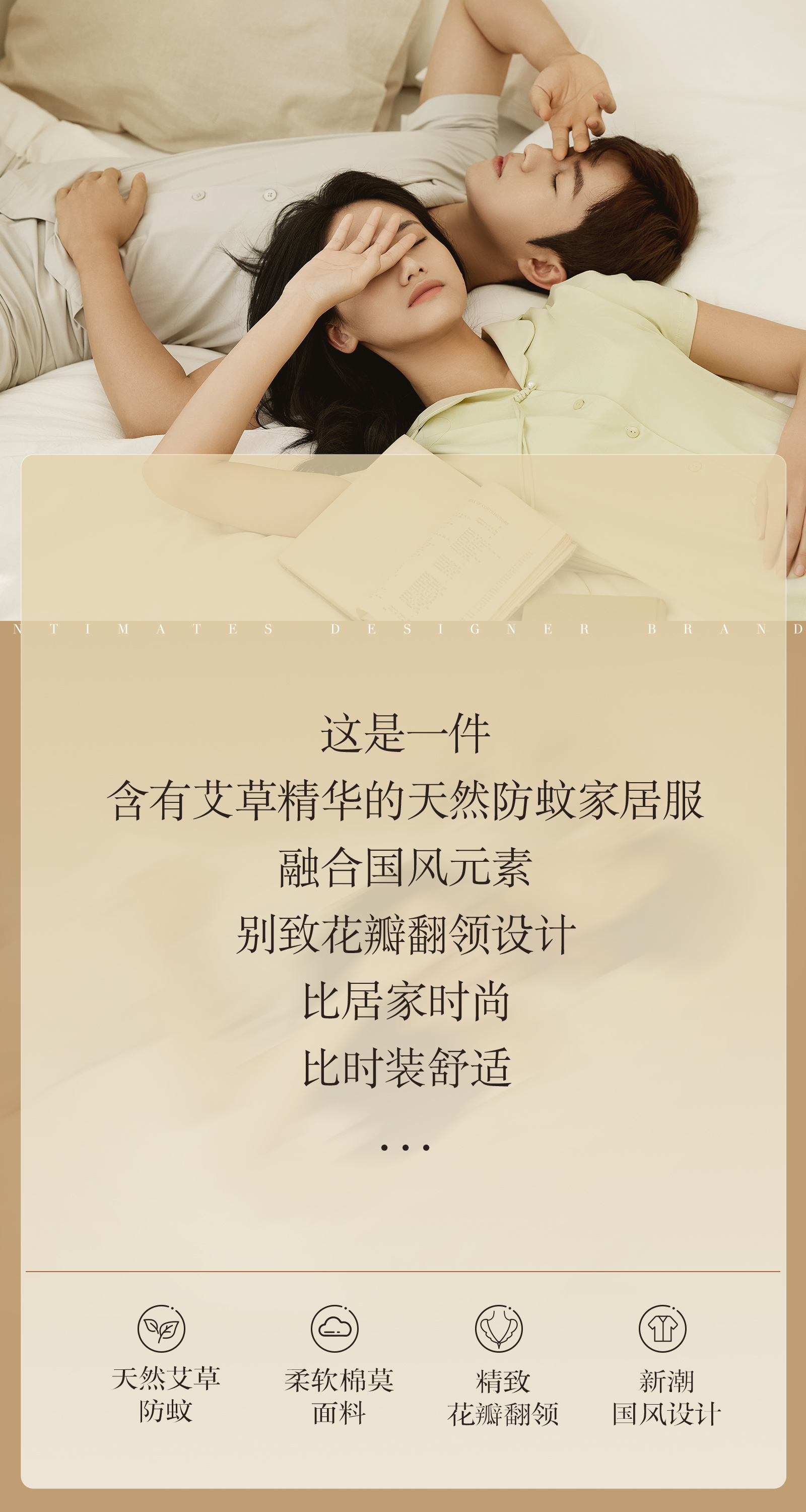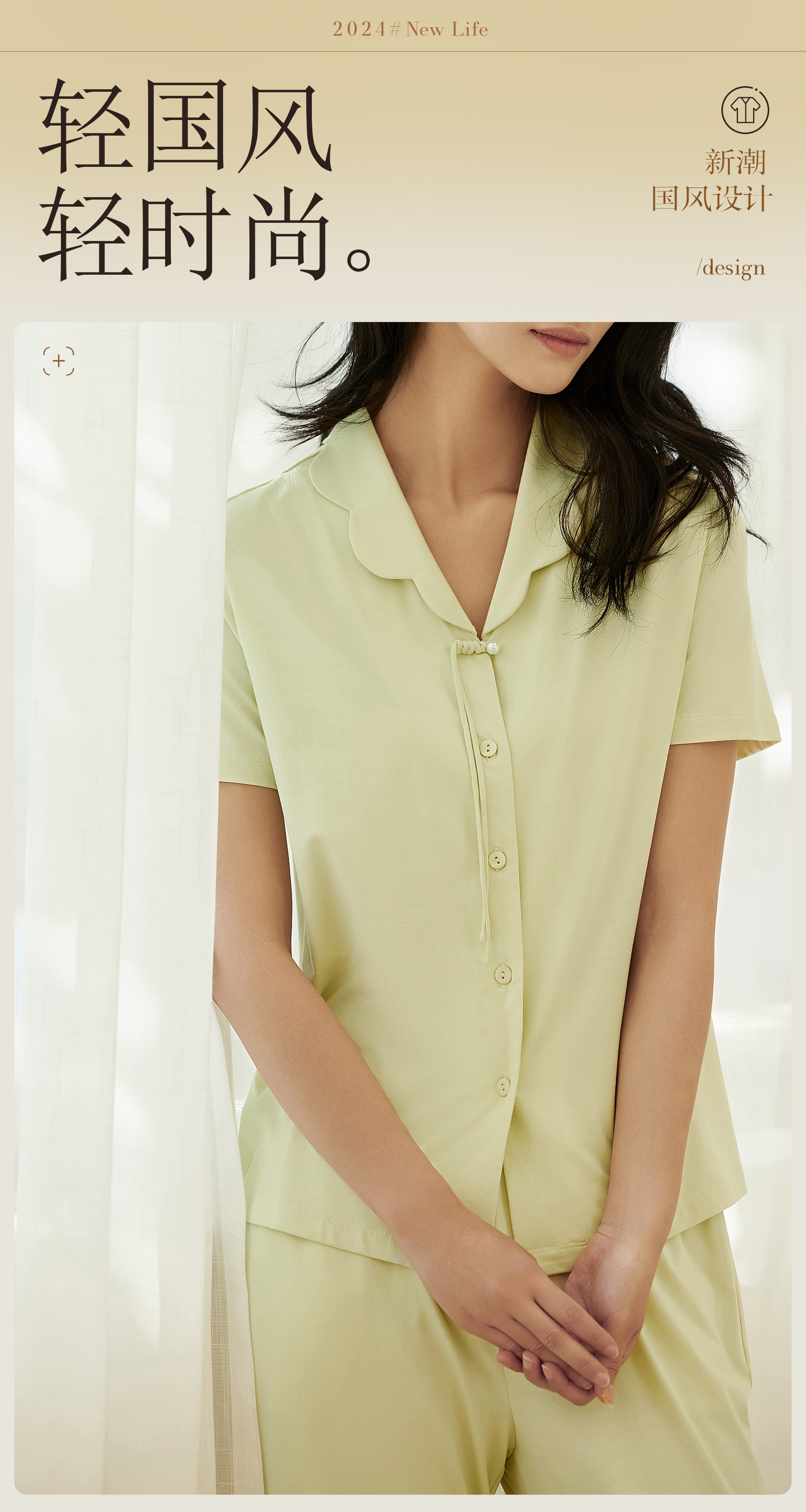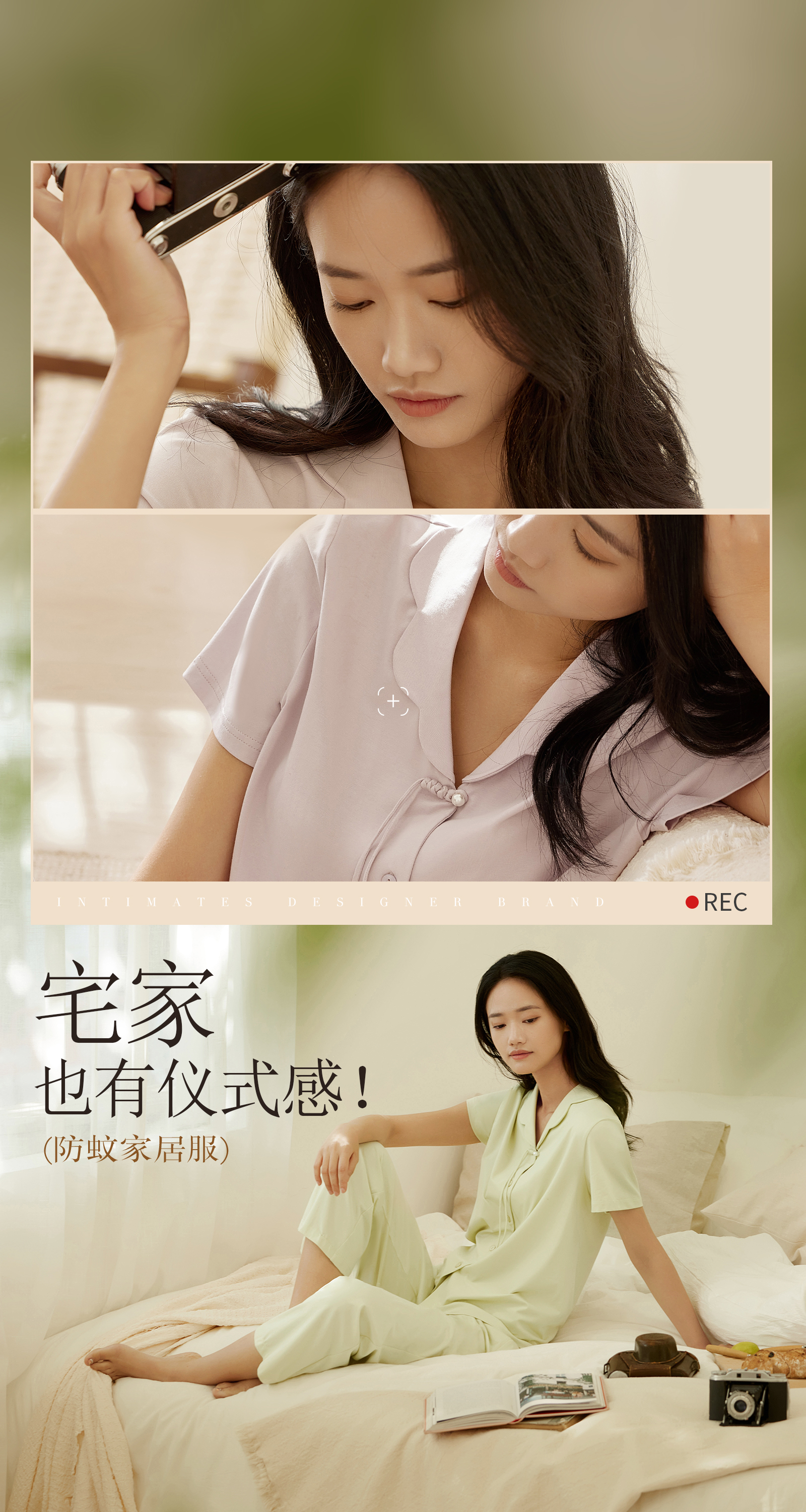 皇家丽美国风防蚊莫代尔家居服女款春夏短袖开衫艾草防蚊可外穿套装JJT9128
