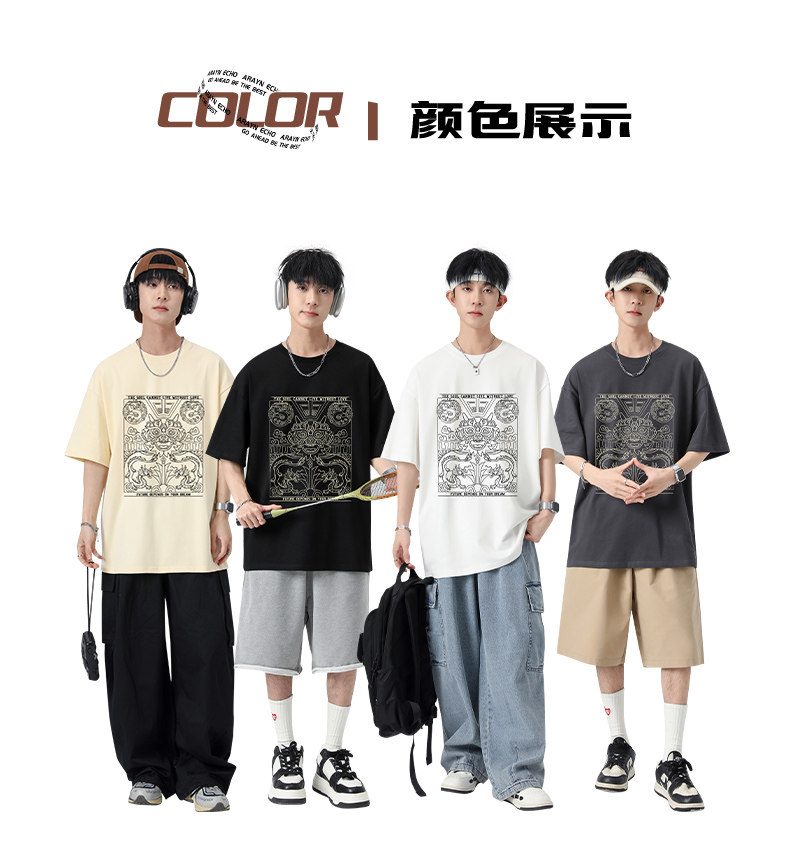回力短袖男2025夏季新款国潮重磅纯棉T恤宽松休闲男生大码体恤衫