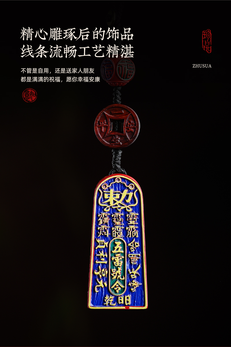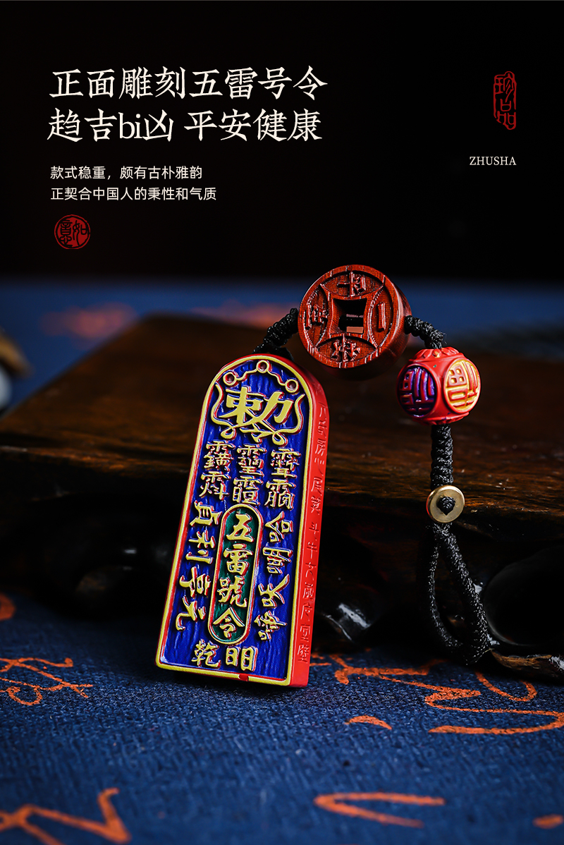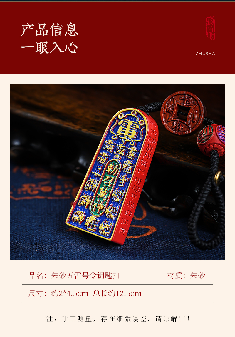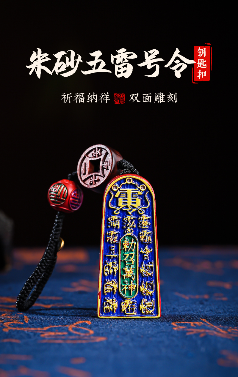 含辰砂工艺品朱砂彩绘五雷号令钥匙扣手机挂车挂设计款