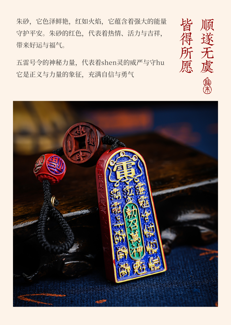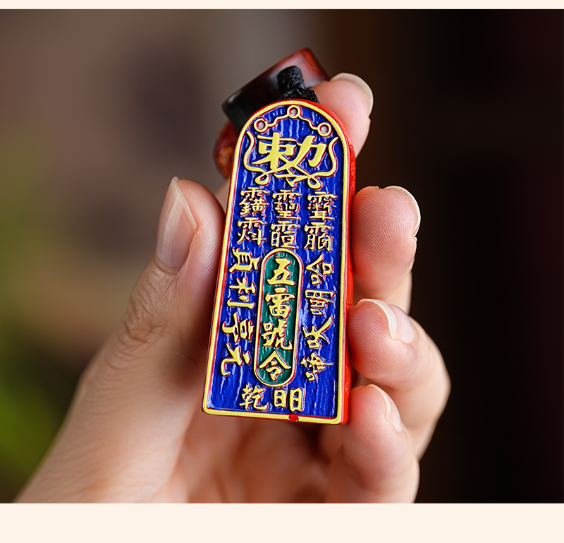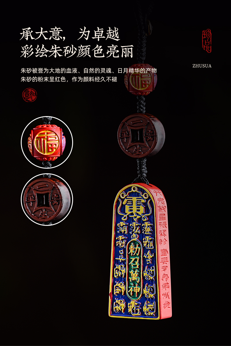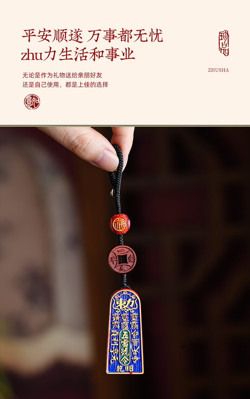 含辰砂工艺品朱砂彩绘五雷号令钥匙扣手机挂车挂设计款
