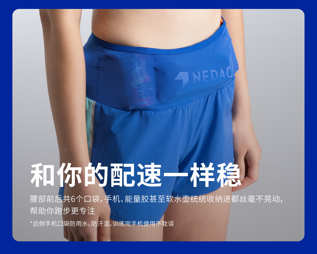 腰包拼接女短裤 NEDAO内道 女子马拉松 越野跑 高弹内衬 跑步短裤