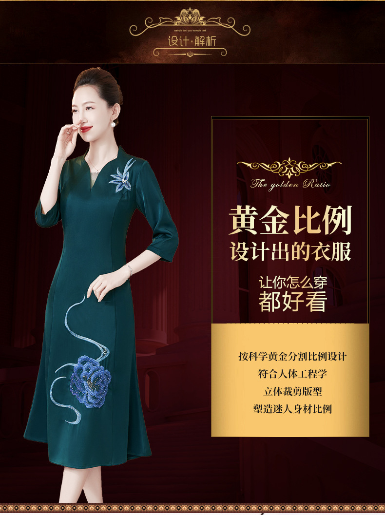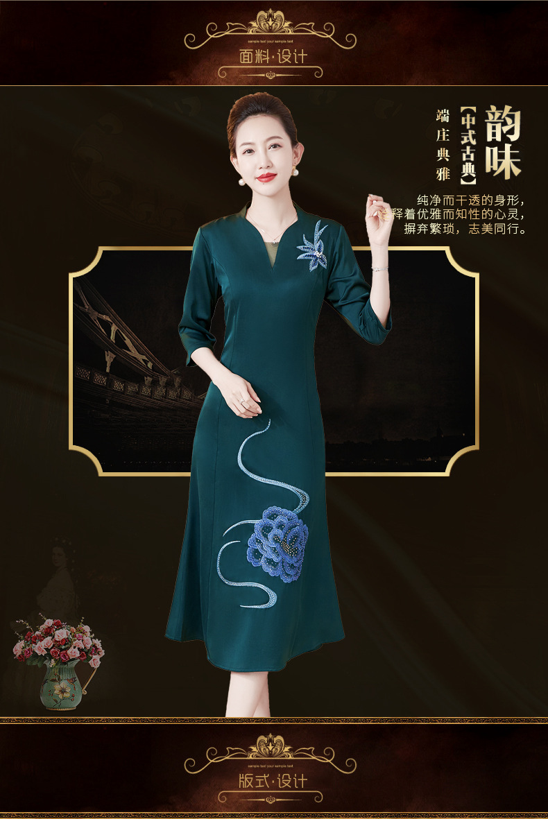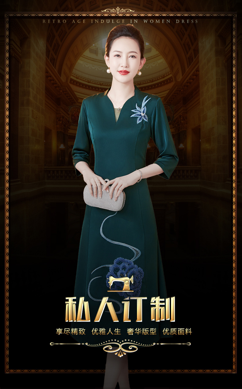 高贵优雅,新款婚宴礼服妈妈装喜婆婆气中长款连衣裙礼服LC-2267