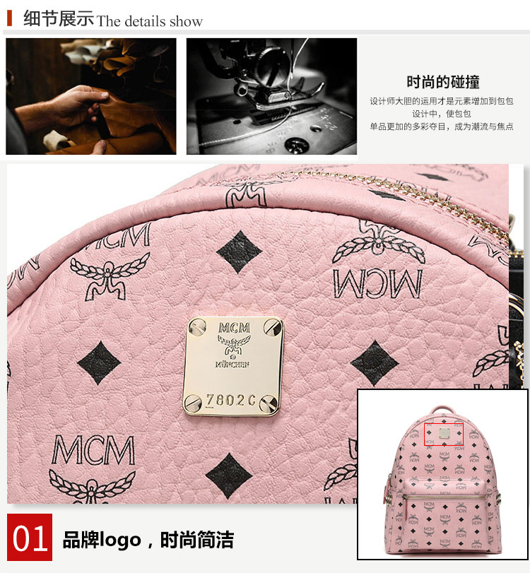 MCM/MCM女士PVC字母组合图案双肩包 MMK7AVE99PZ001