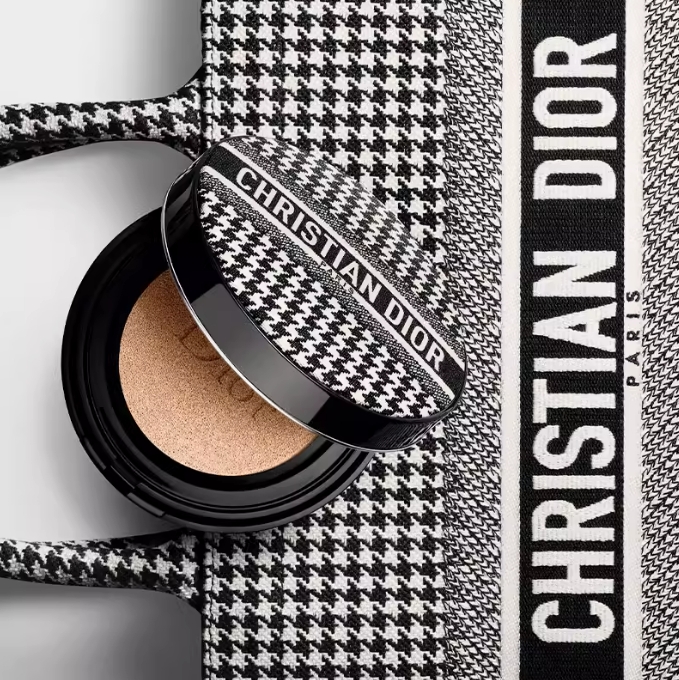 Dior迪奥千鸟格限量版凝脂恒久气垫,轻松遮盖瑕疵,锁妆持久不脱妆,SPF35防晒呵护,同时具备超强防水性能,水珠滑落不留痕迹。