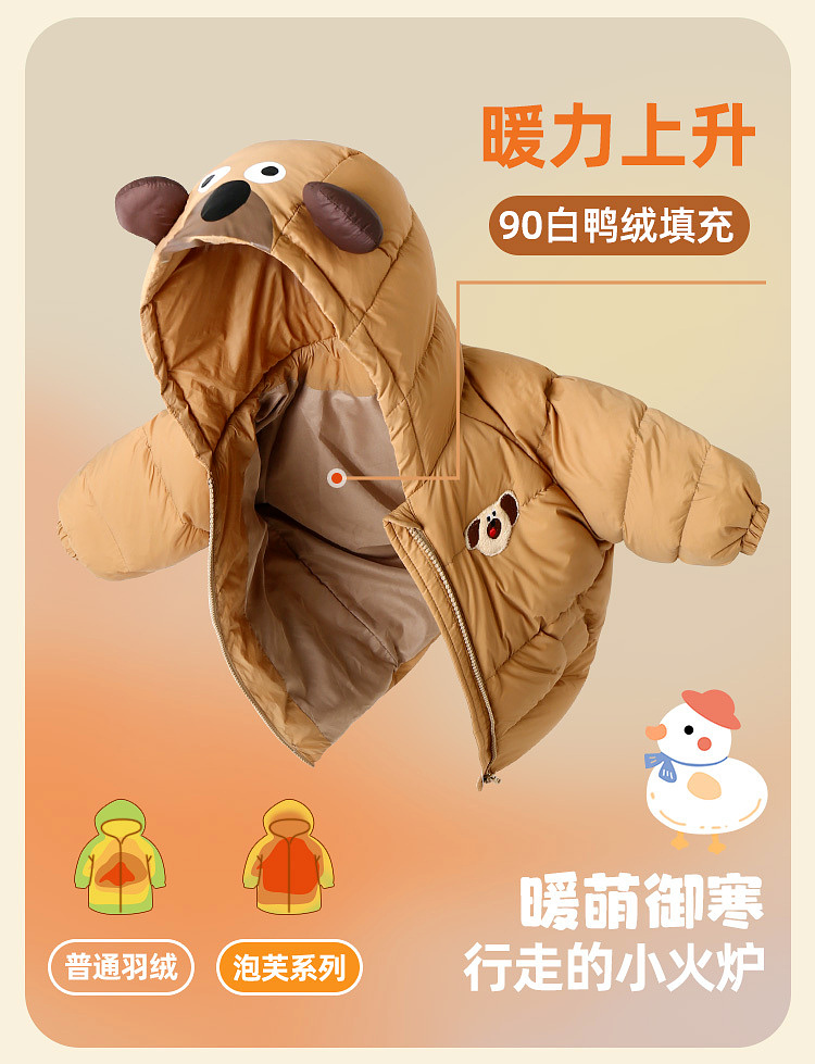嘟嘟家宝宝连帽羽绒服儿童外套女童冬装男童厚款上衣冬季保暖衣服