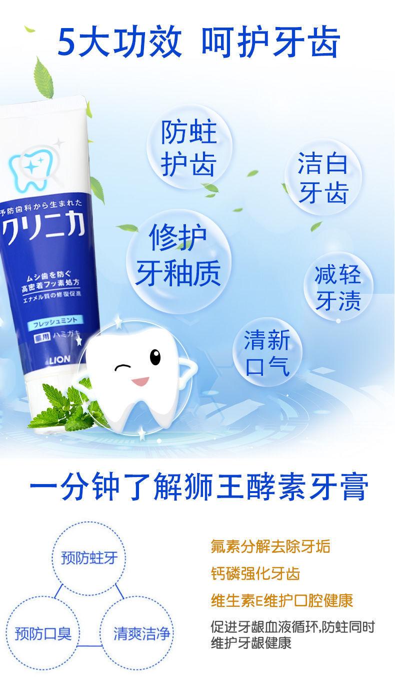 【爆款超低价预售 急单慎拍】日本LION狮王酵素牙膏薄荷防蛀固齿去口臭改善牙黄清新口气去牙渍