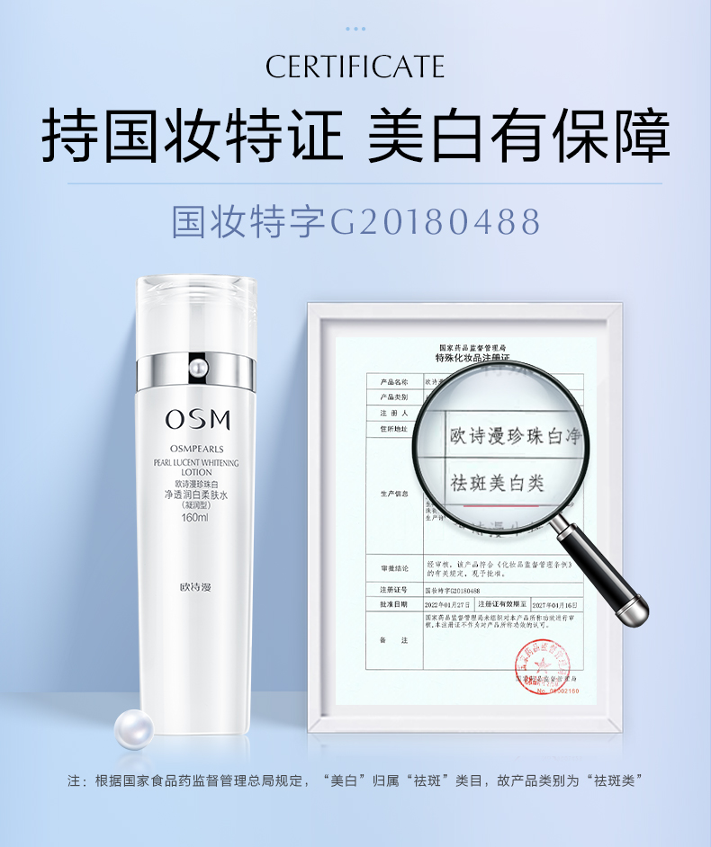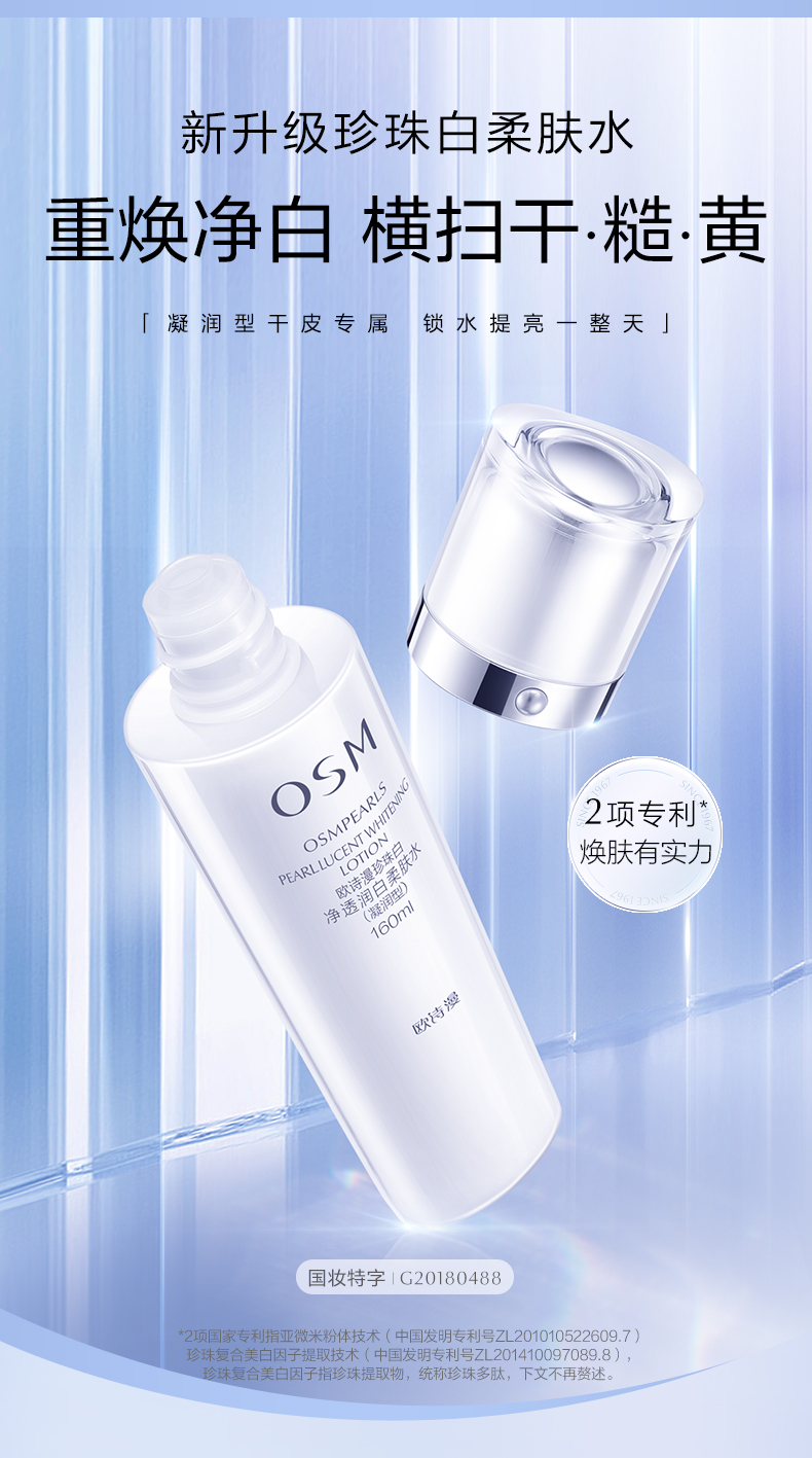 【预售】欧诗漫珍珠白净透润白柔肤水 160ml 原价168元