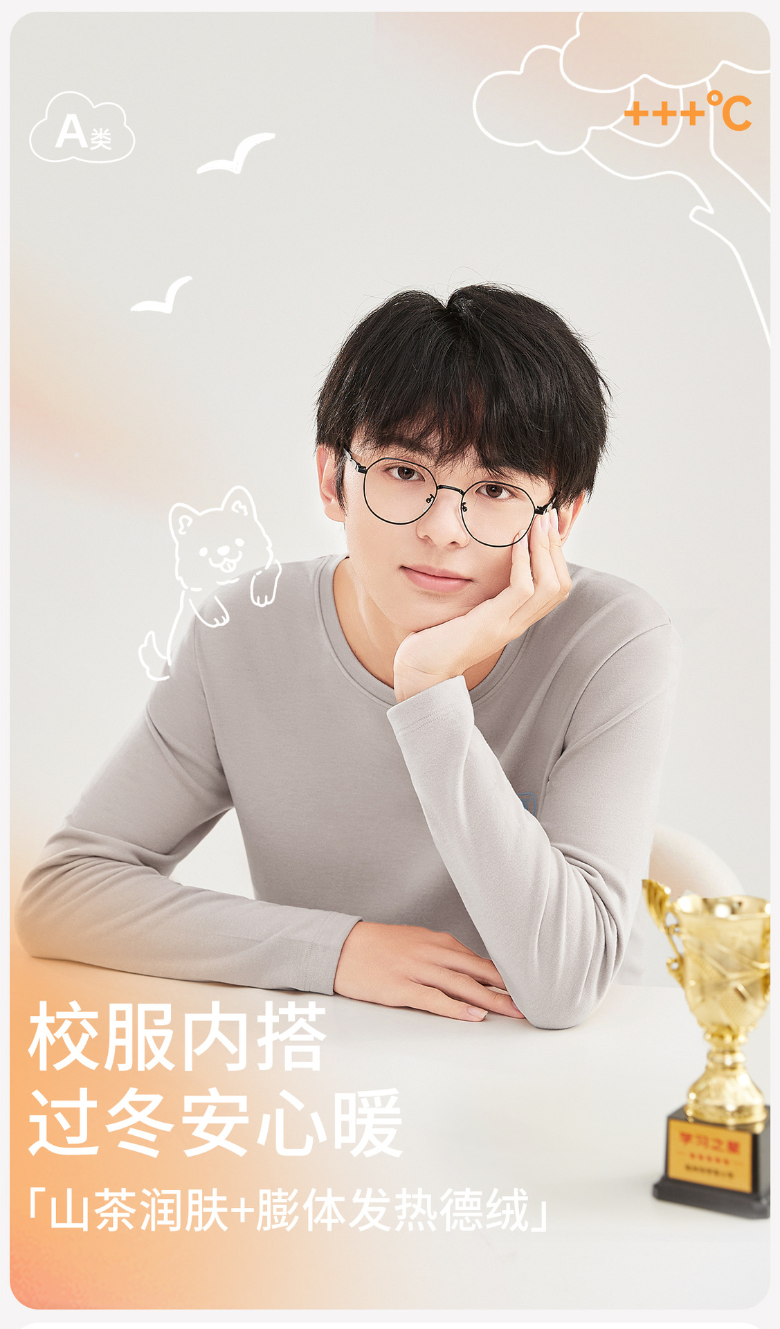 春节不打烊【山茶油润肤❗️发热膨体德绒】青少年德绒发热保暖内衣套装冬季防寒打底衫男款加厚内穿秋衣秋裤。jc