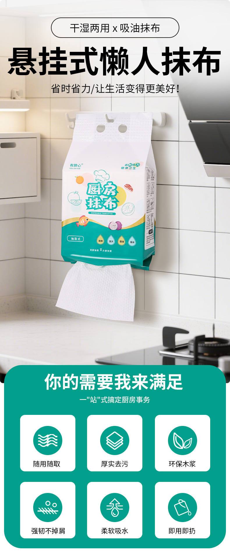 【悬挂式懒人抹布!干湿两用】厨房纸巾吸油吸水去油加厚一次性洗碗布干湿两用懒人抹布。ry