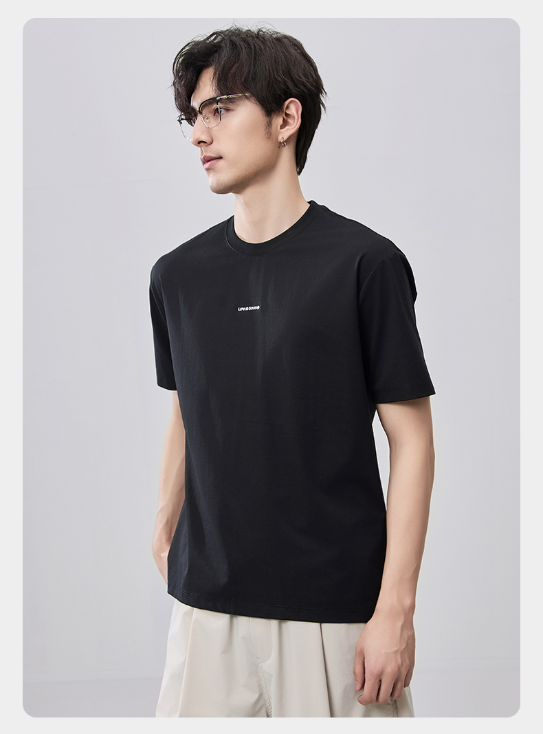 贝纳川字母刺绣圆领短袖T恤ECF214119