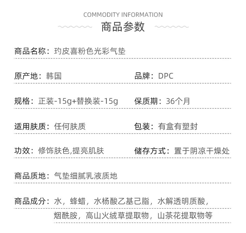 【爆款超低价预售 急单慎拍】正品特价韩国DPC粉色系白皮光彩气垫豹纹提亮遮瑕持久 赠替换装