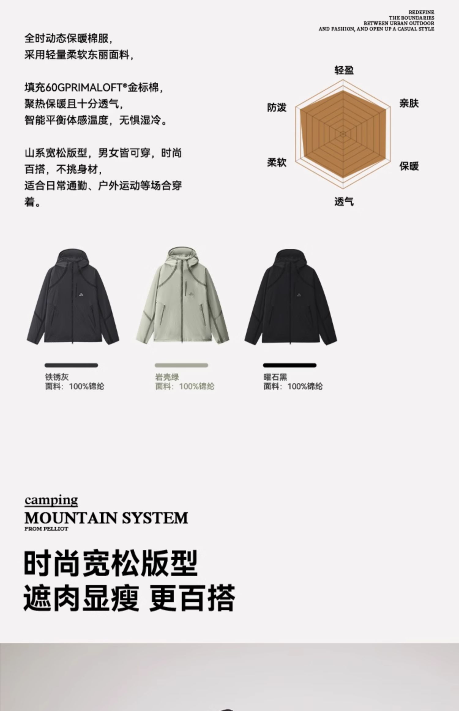 【山系】伯希和户外Primaloft金标P棉服男春季女新款防风外套
