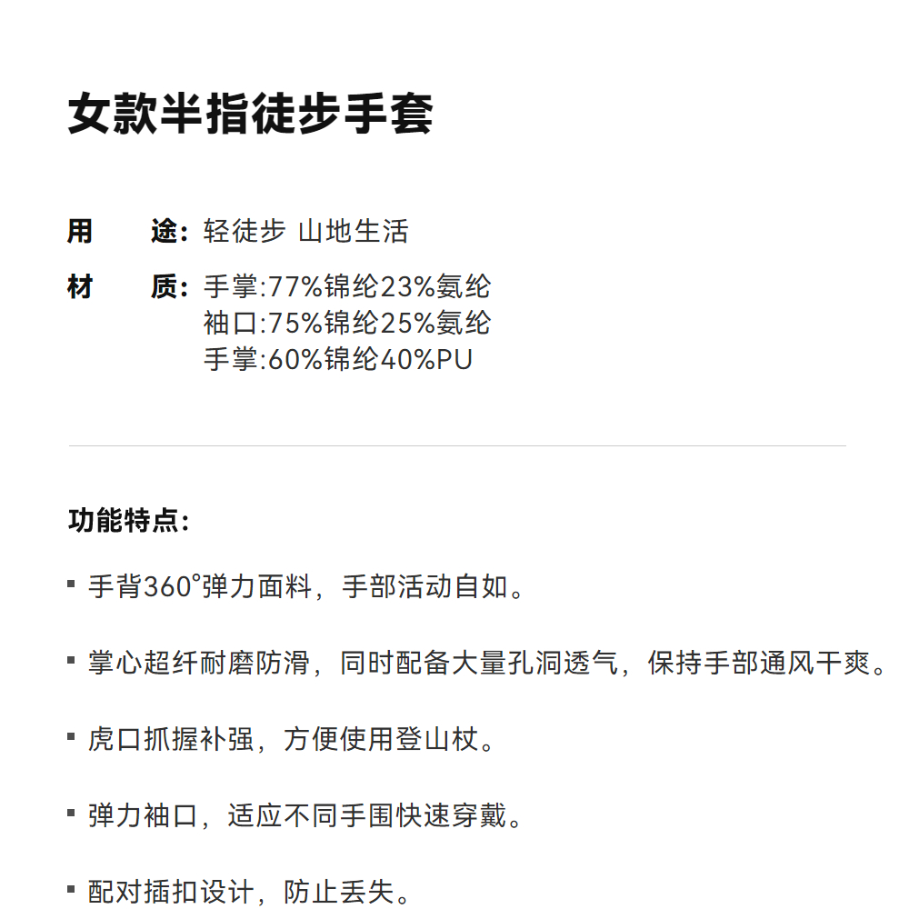 KAILAS凯乐石 女款半指徒步手套 KM2554202【Z】