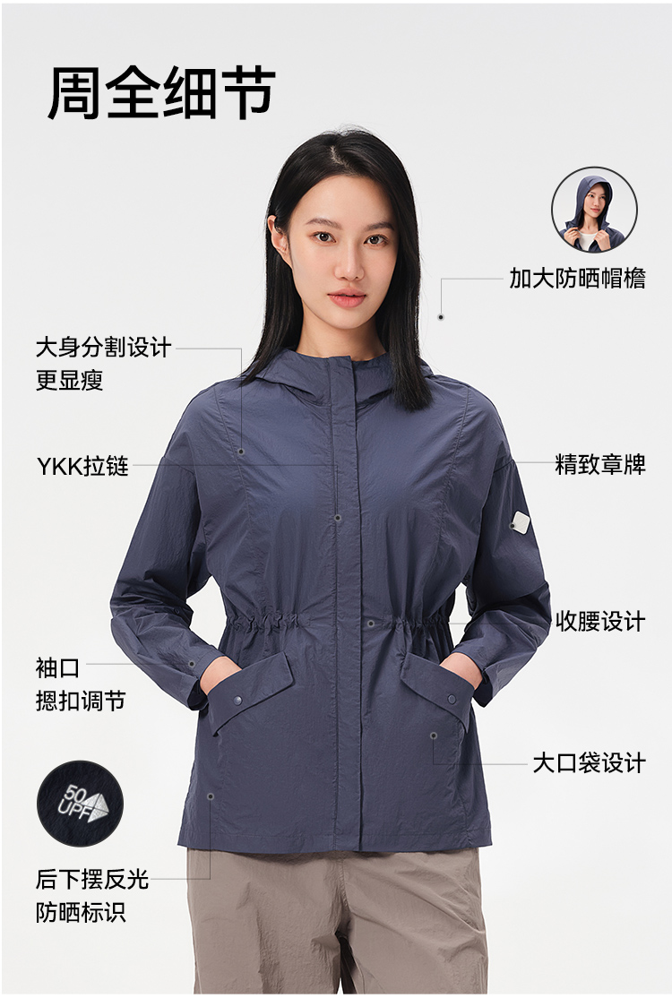 伯希和户外防晒衣女夏季新款皮肤风衣轻薄透气骑行专业防晒服外套