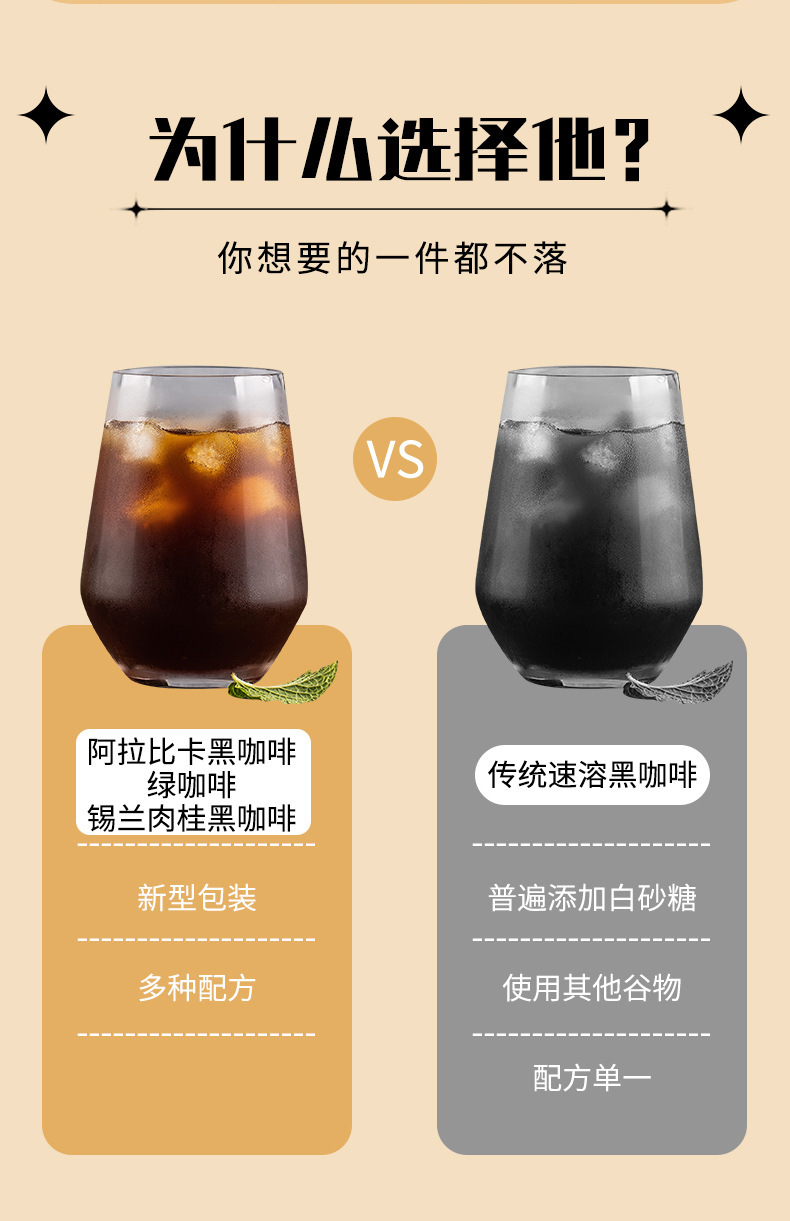 【双豆搭配醇厚加倍! 阿拉比卡黑咖啡】锡兰肉桂黑咖啡,黄金配比 粉质细腻 冷热双泡,独立包装携带方便,减脂健身早餐搭配不单独添加蔗糖速溶咖啡粉Y