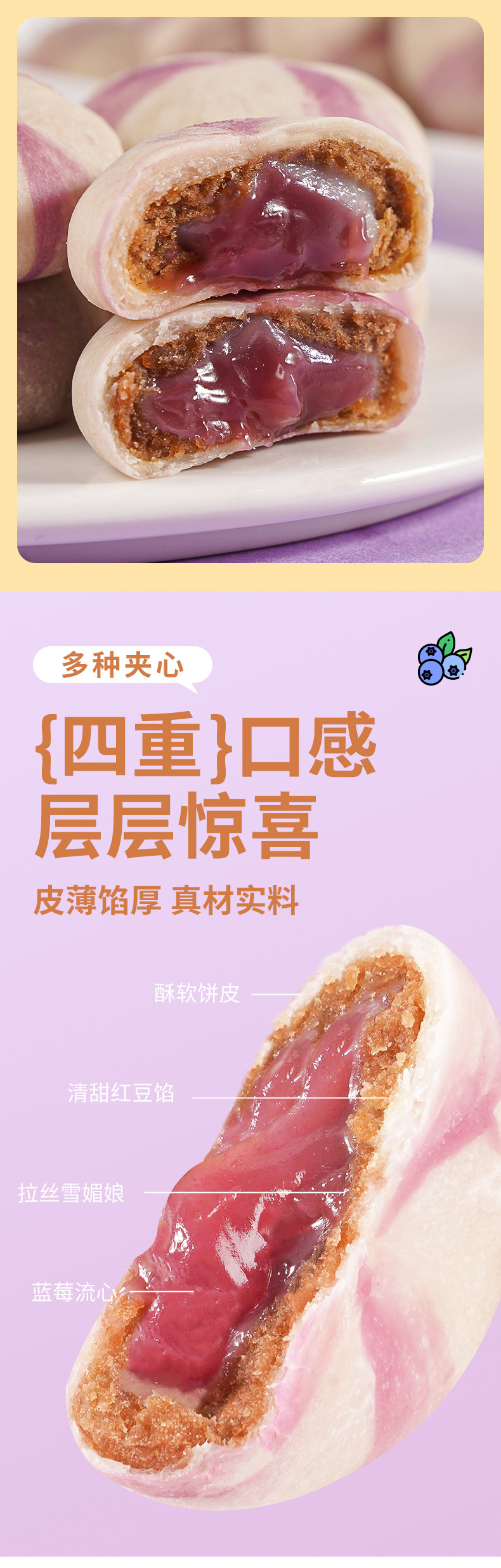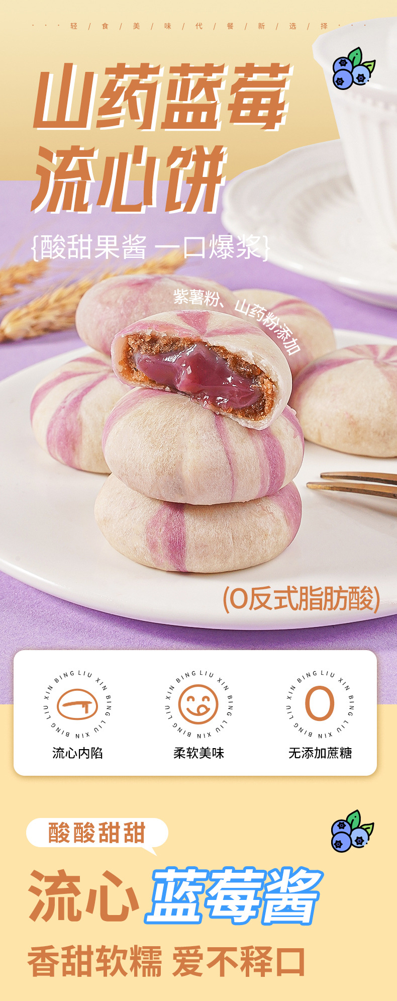 【一口爆浆!山药蓝莓流心糕】酸酸甜甜,流心蓝莓酱,香甜软糯,爱不释口,点心雪梅娘山药红豆饼,软糯休闲解馋代餐零食L