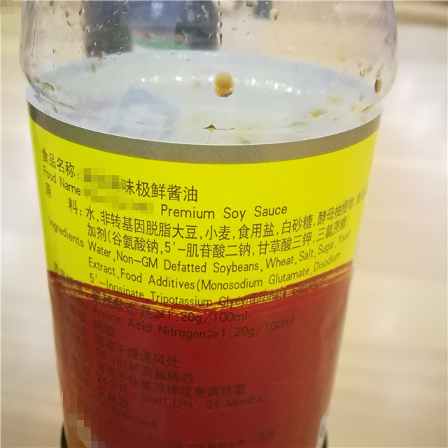 (上图)这是一款山东乃至全国畅销的酱油,味道鲜美,味鲜至极。然而这样的一款酱油里面含有多种添加剂,在配料的第二排是味精、提鲜剂、防腐剂、甜味剂、焦糖色……