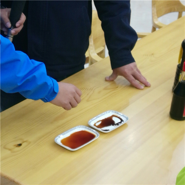 我们凑近闻一闻,放心酱油是自然的发酵香气,有轻轻的酱香,然而放了大量添加剂的酱油,闻不到发酵的香气,钻进嗅觉的是满满的添加剂的浓烈气息。