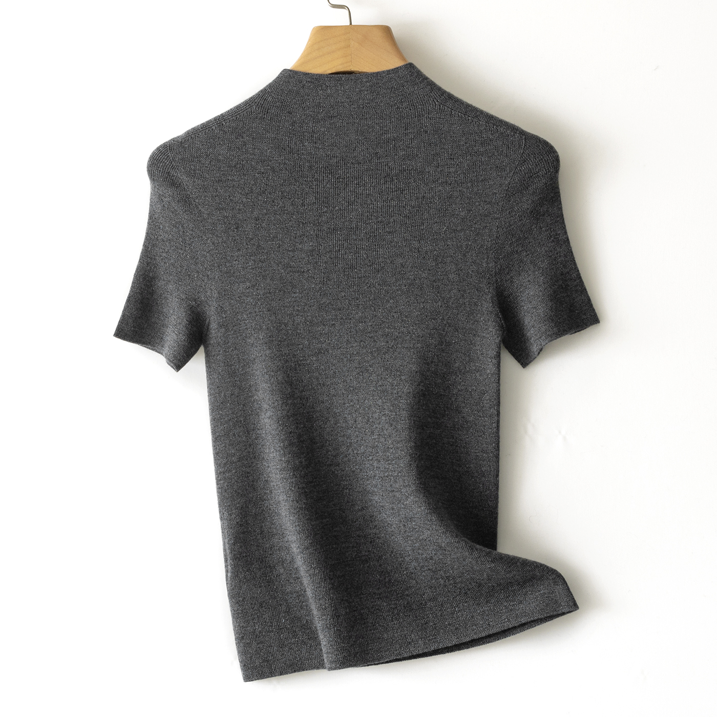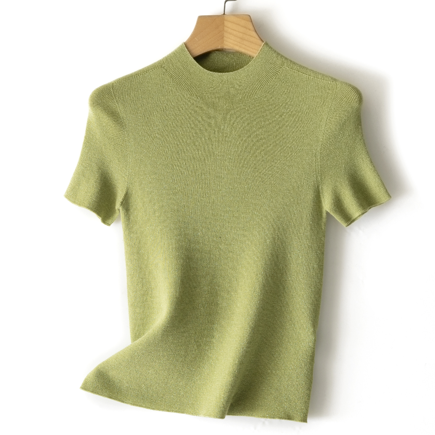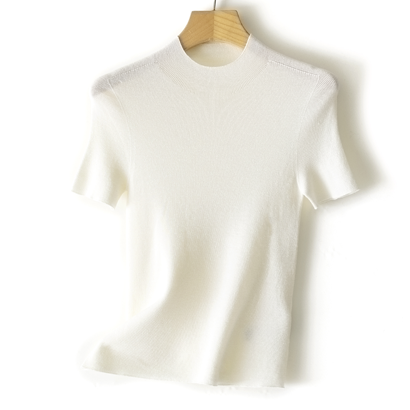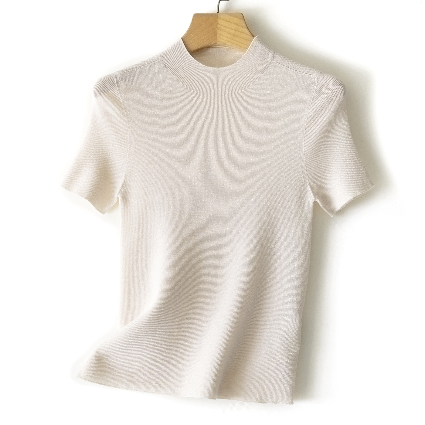 60支精纺羊毛半高领短袖,把金银丝织进纱线里