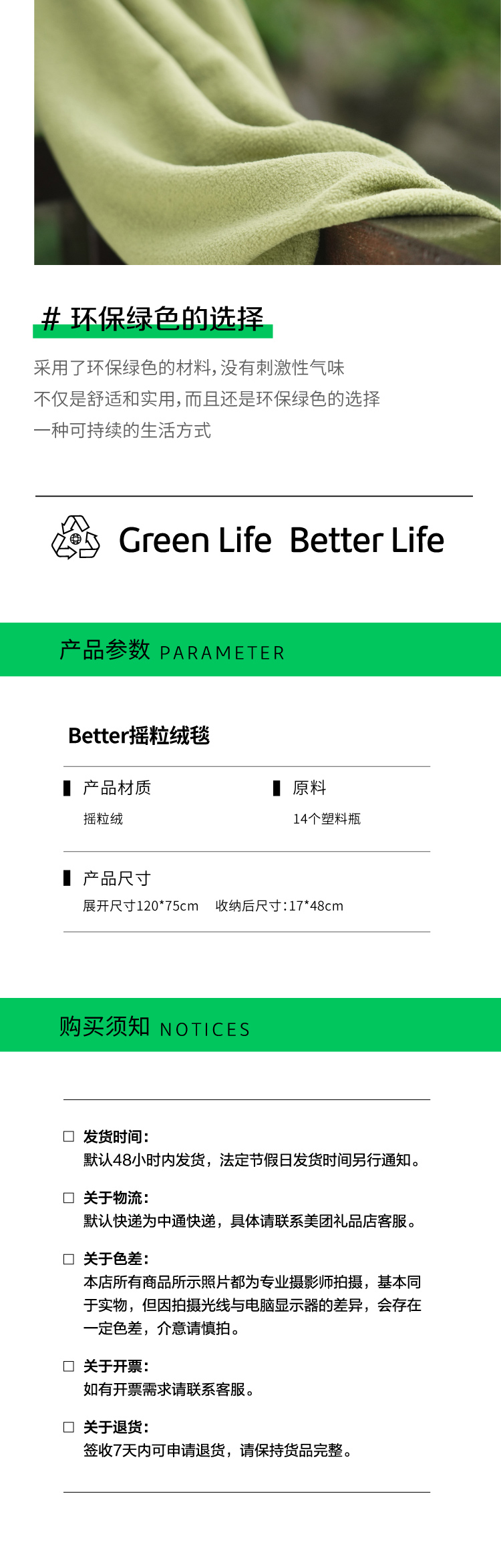 Better环保系列RPET摇粒绒毛毯午睡毯
