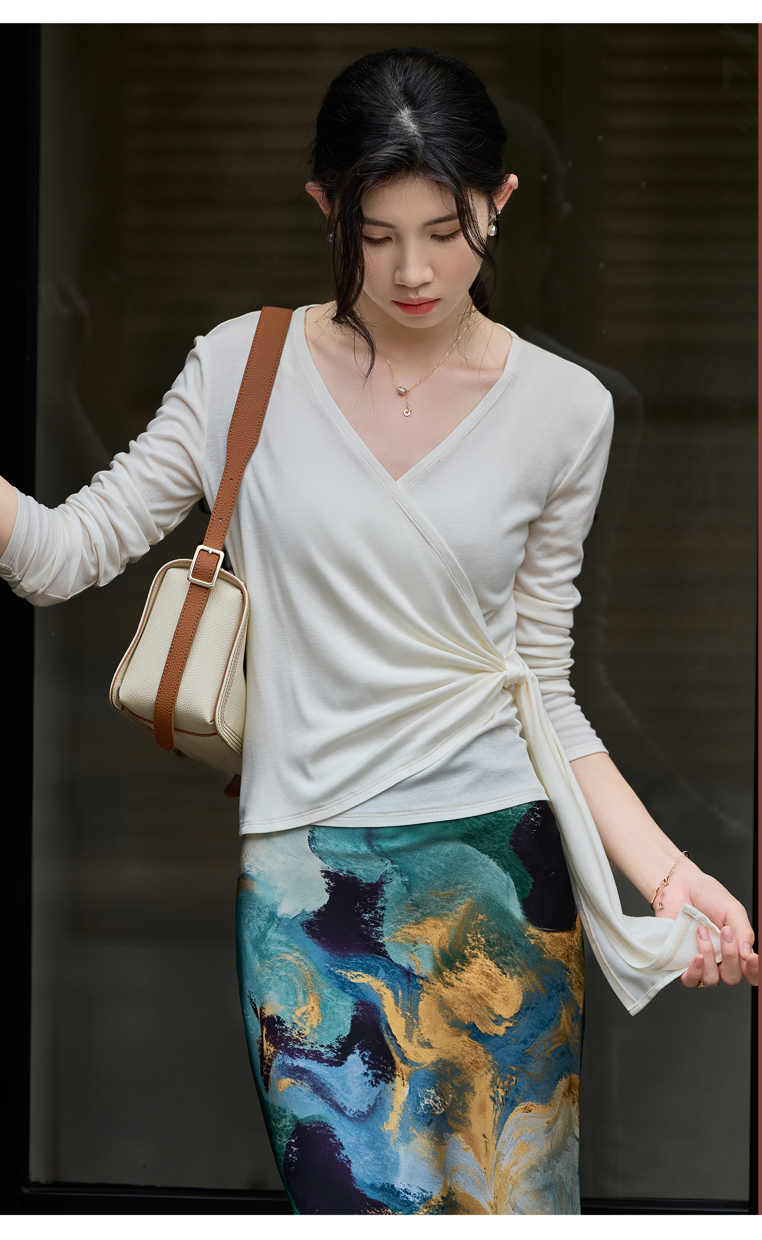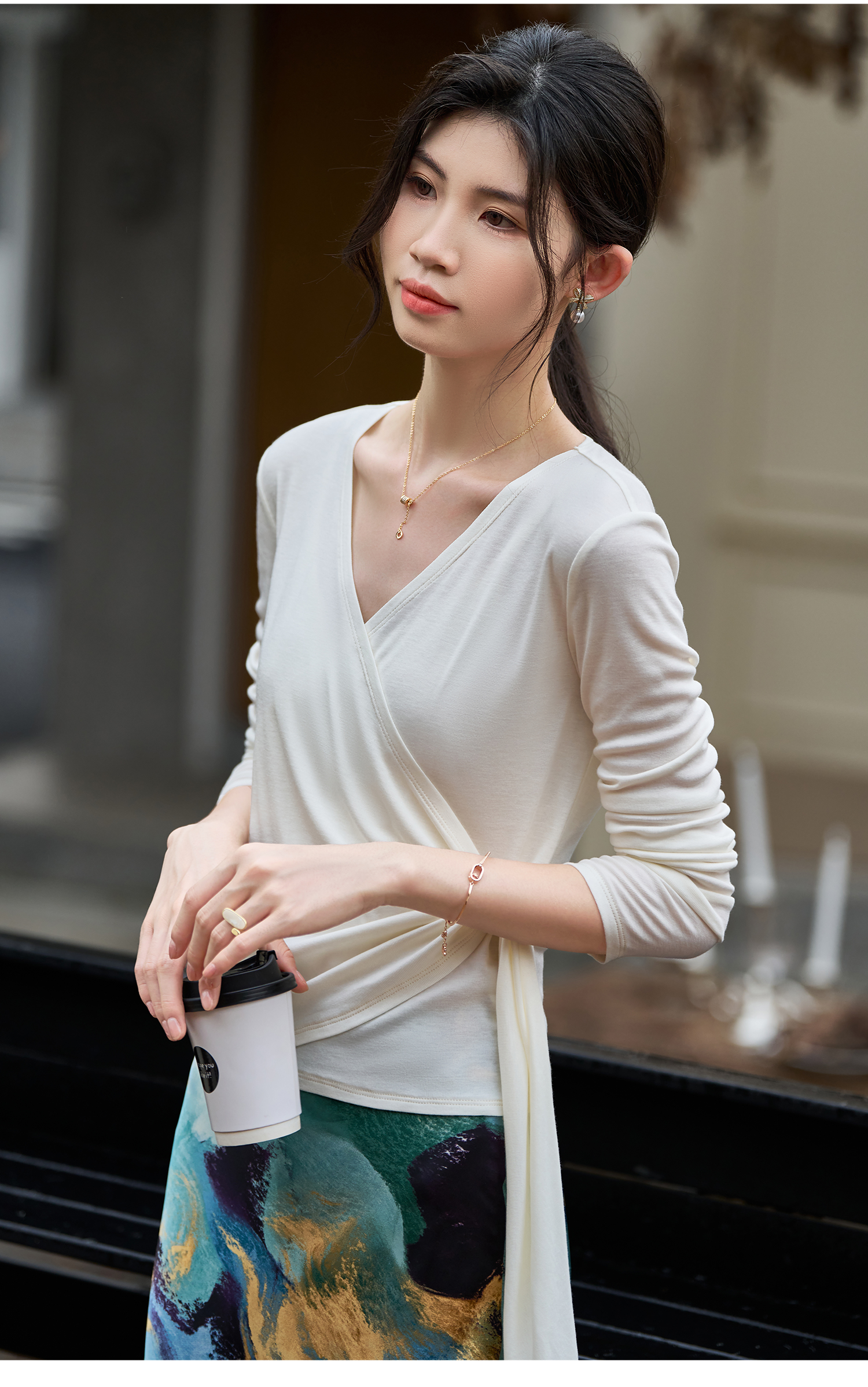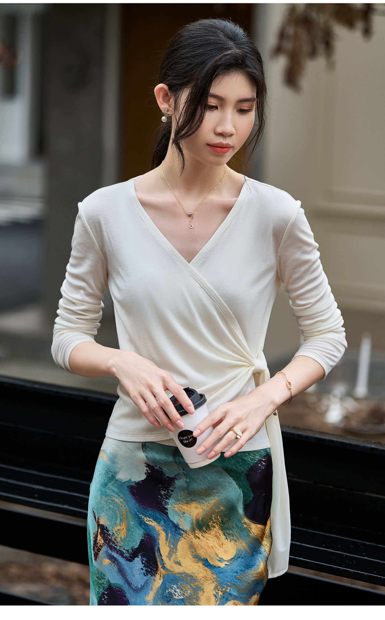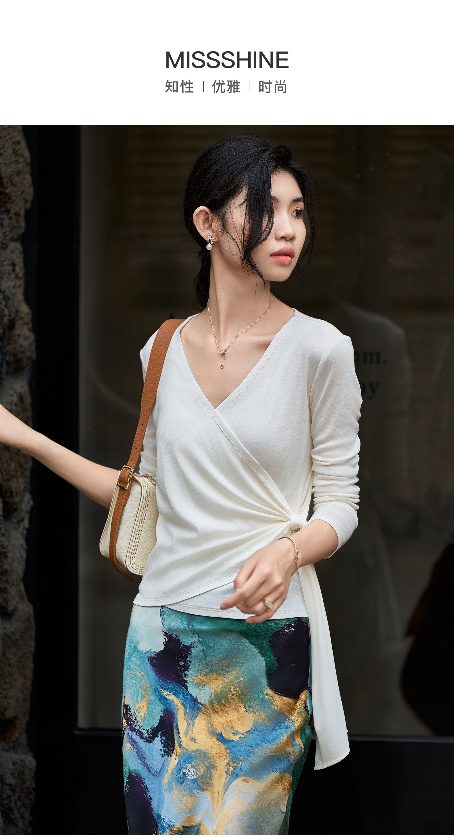 剩S/M 米思阳2025秋季新款设计感V领不规则绑带天丝衬衫内搭上衣女3839