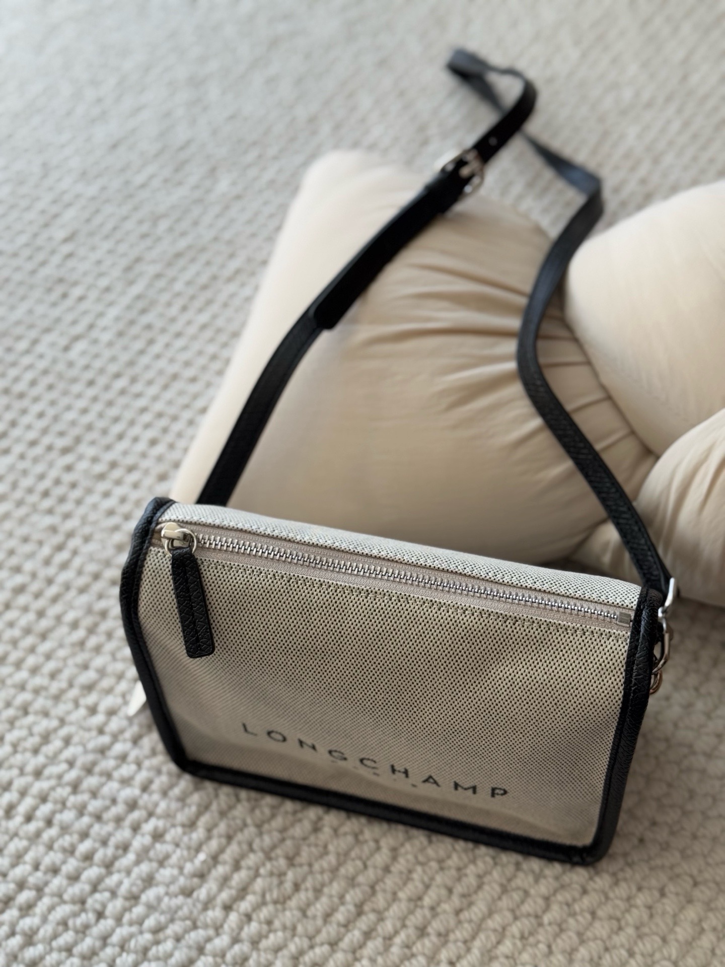 这只Essential Toile实力真的强,要不说它颜值高呢,包型简约,日常和通勤都能背!可拎可斜挎!酷酷的极简风包包!亚麻色+黑色的组合,经典很耐看!织物+牛皮革材质!