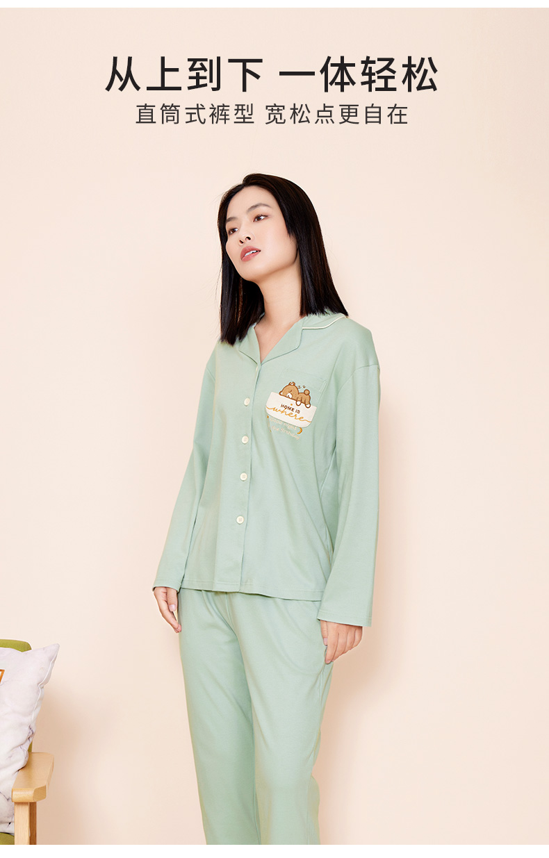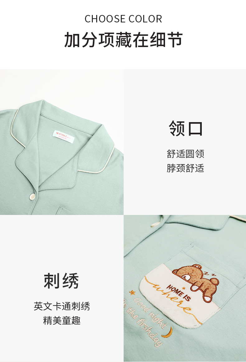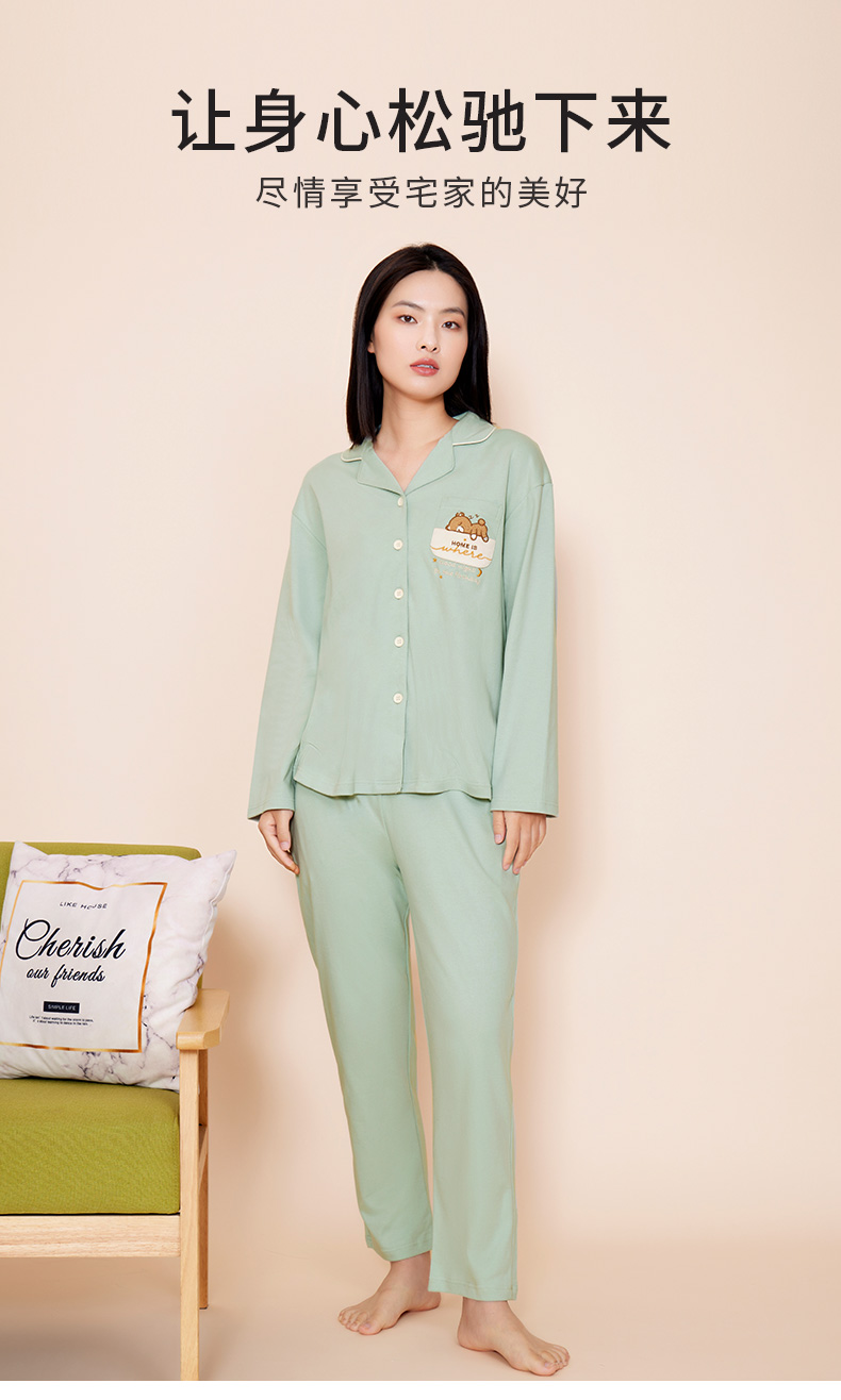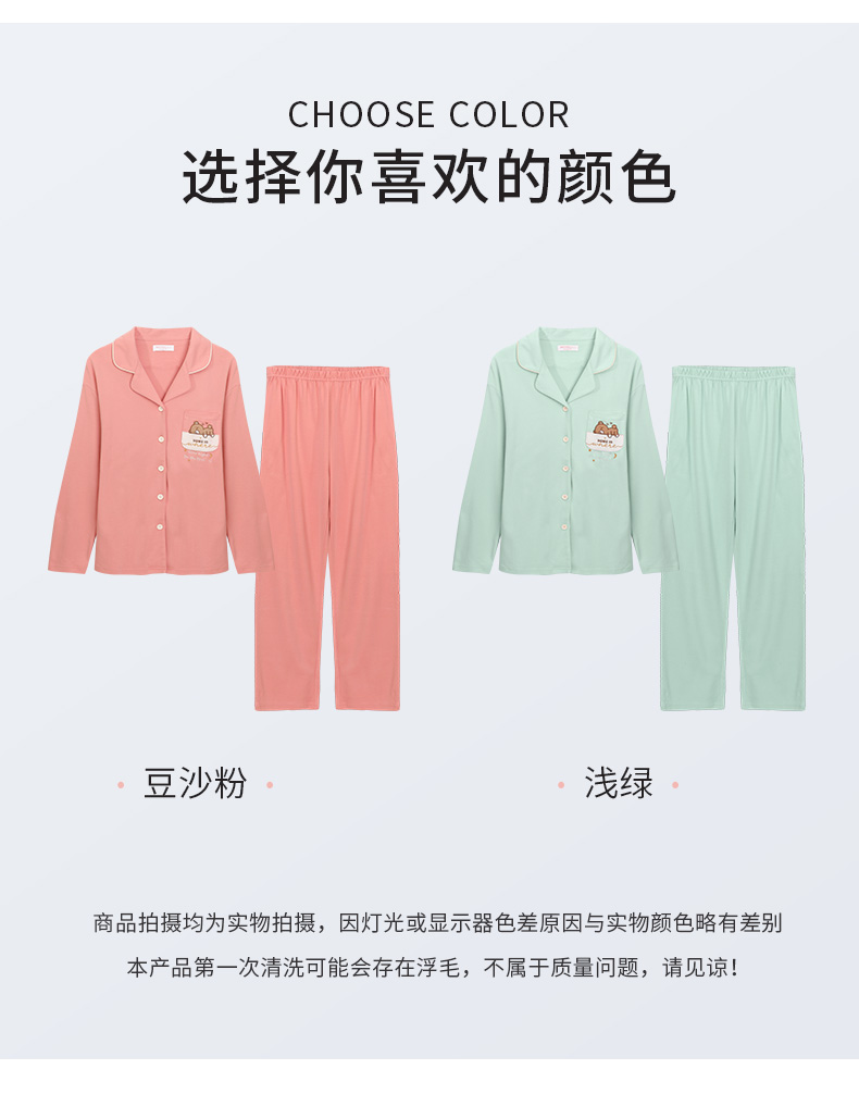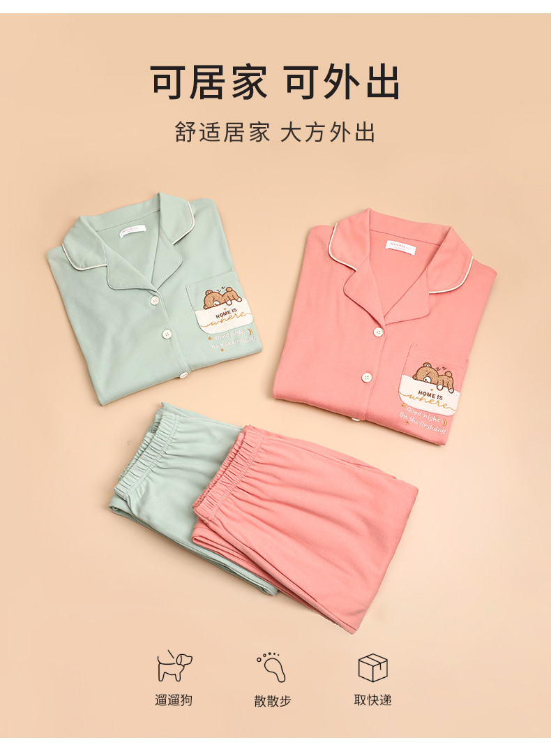 熳洁儿 秋冬晚安小熊可爱纯棉翻领套装裤侧口袋设计女款家居服套装22703227