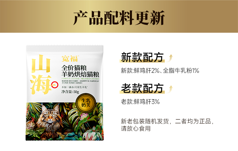 【山海羊奶烘焙粮尝鲜】农科院&宽福联合研制 猫粮甄选奶源液体羊乳灌注 不加一滴水 只用生羊乳 添加精粹草本有益机体自护 含专利菌+乳铁蛋白+血浆蛋白 (限购一单)