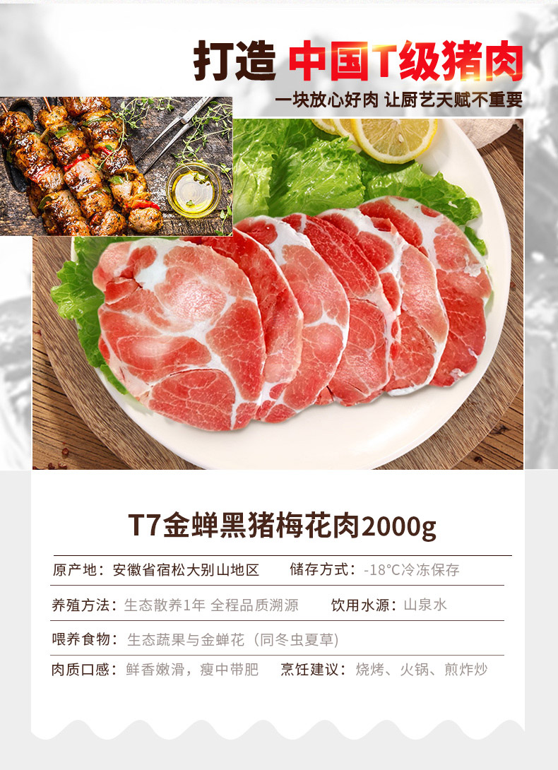 壹号餐桌T7黑猪肉土猪梅花肉1斤装(切片)500g冻品~