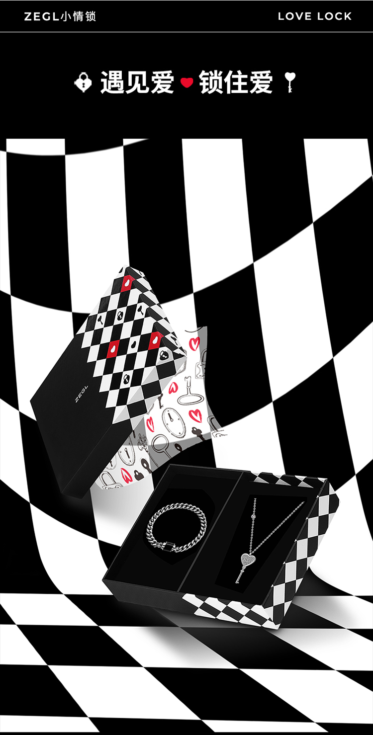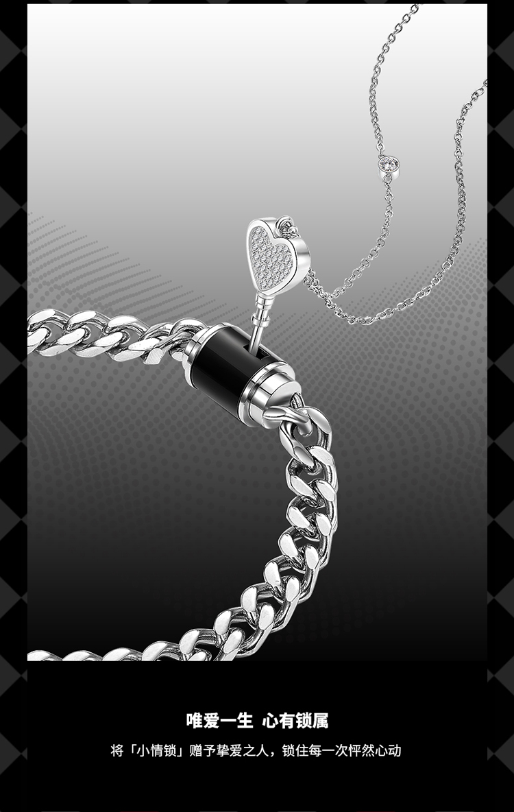 ZEGL一锁定情小情锁情侣手链项链送女友一对款生日七夕礼物送男友
