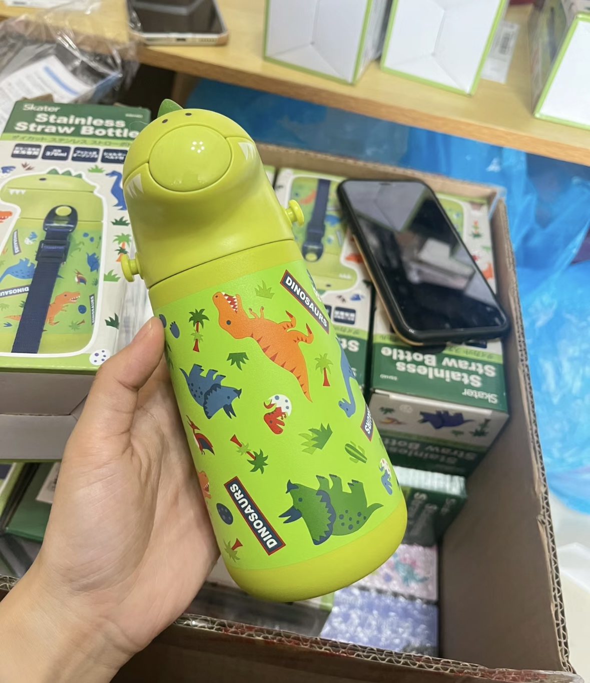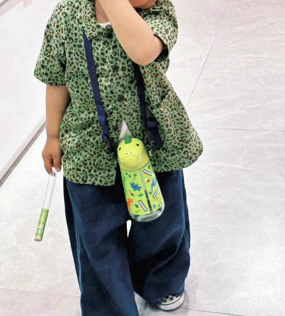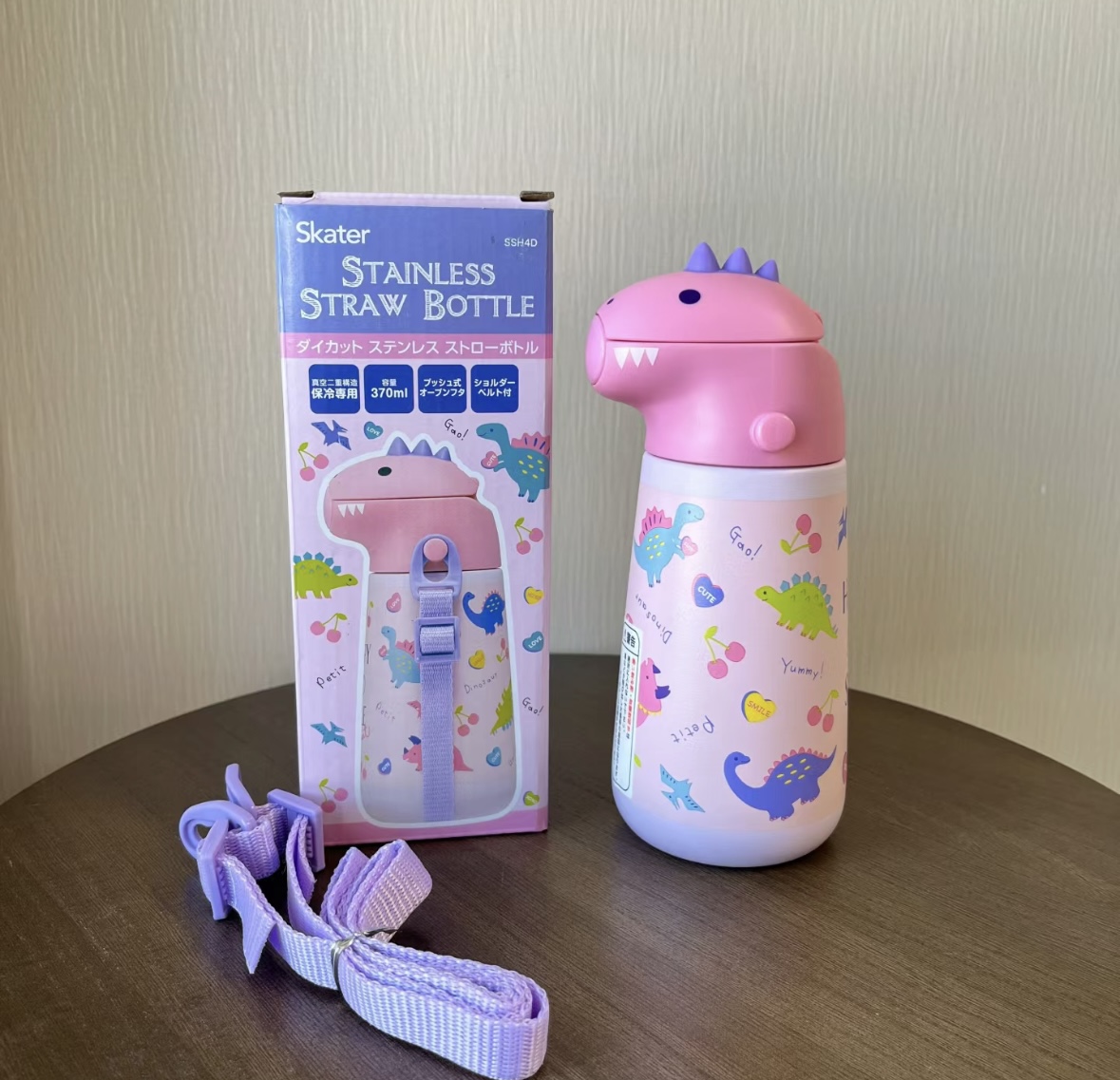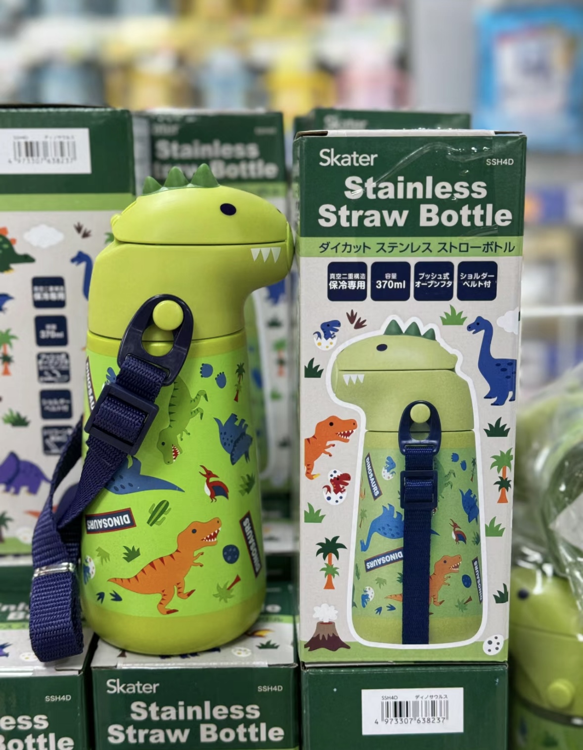 日本skater保温杯 成人3d款/儿童恐龙保温吸管水杯370ml 316不锈钢母婴级 肩带款学饮杯