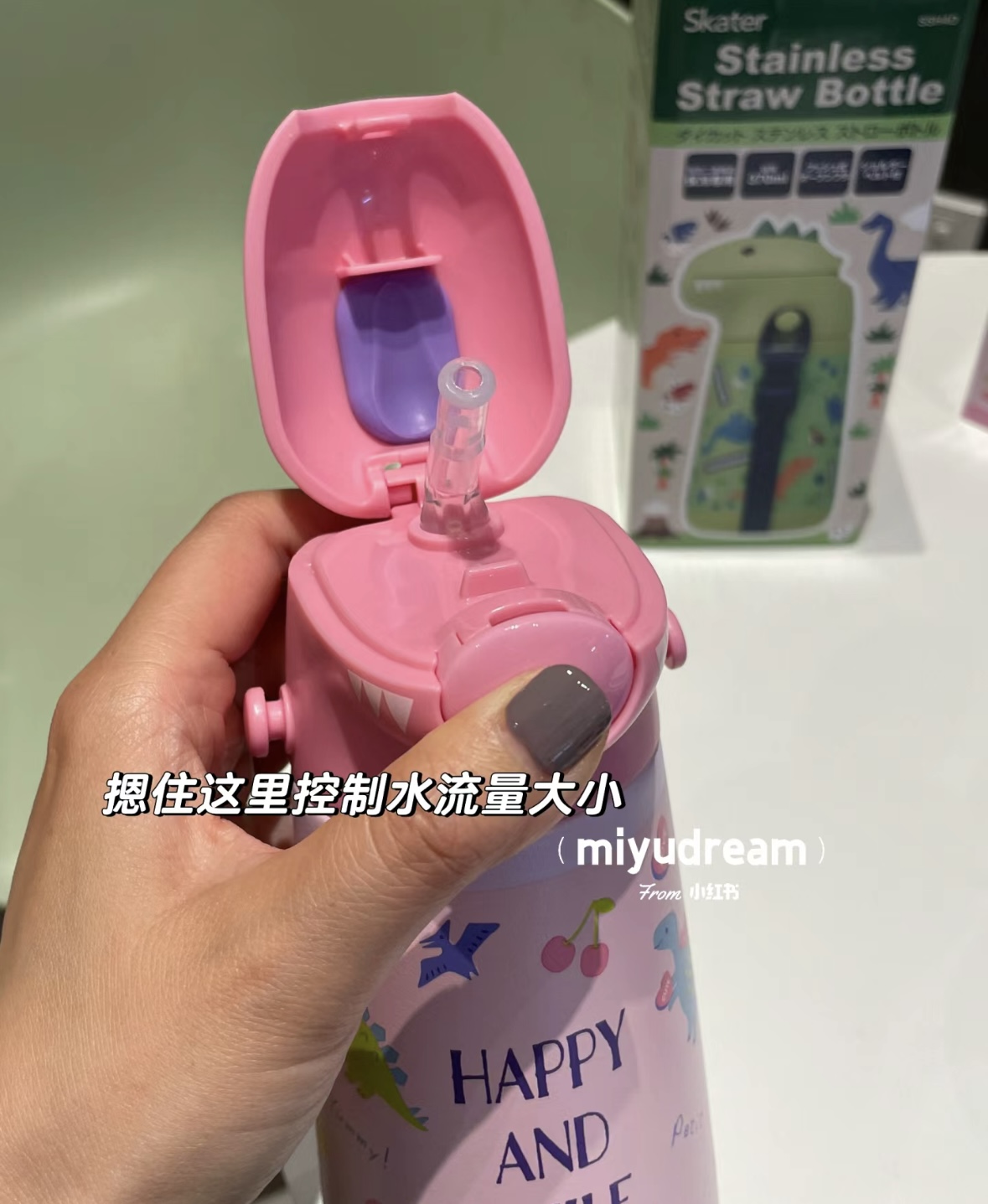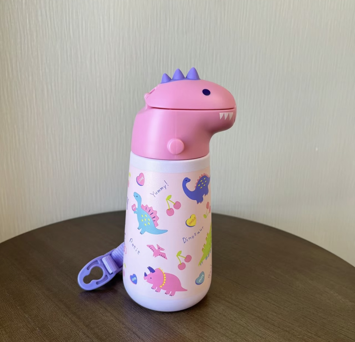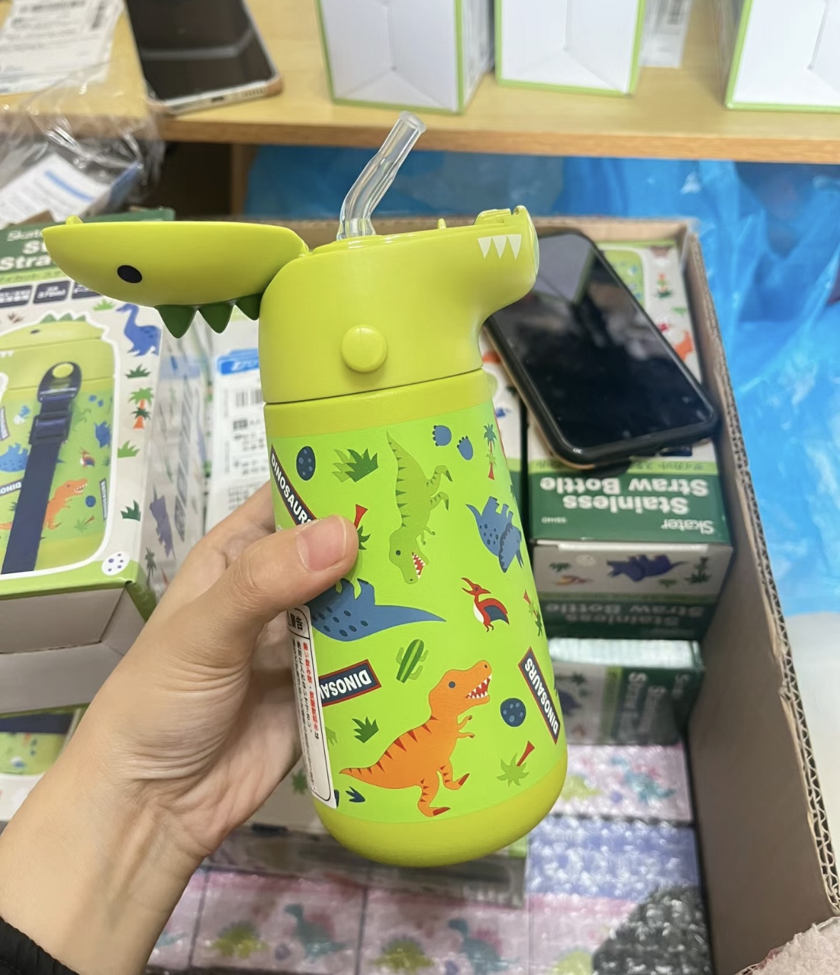 日本skater保温杯 成人3d款/儿童恐龙保温吸管水杯370ml 316不锈钢母婴级 肩带款学饮杯