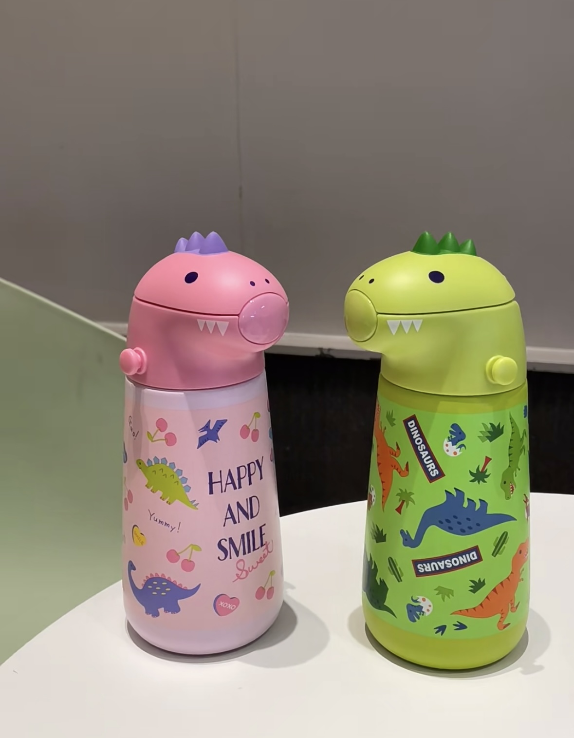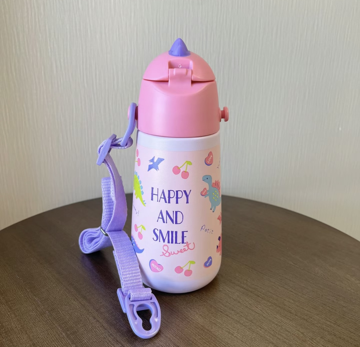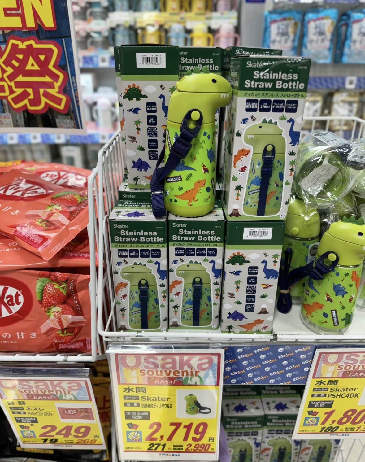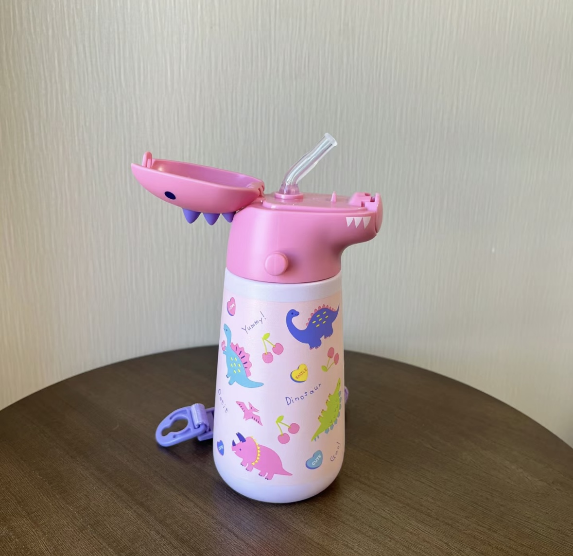 日本skater保温杯 成人3d款/儿童恐龙保温吸管水杯370ml 316不锈钢母婴级 肩带款学饮杯