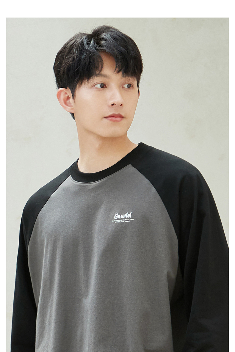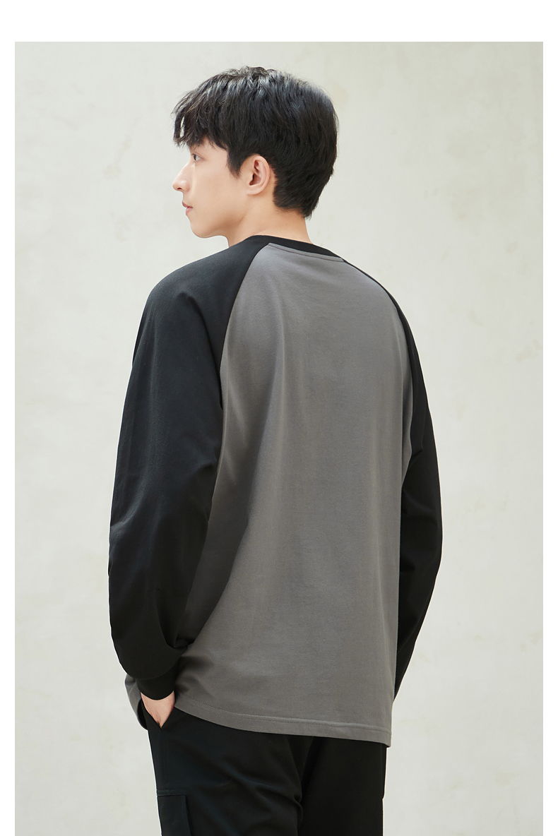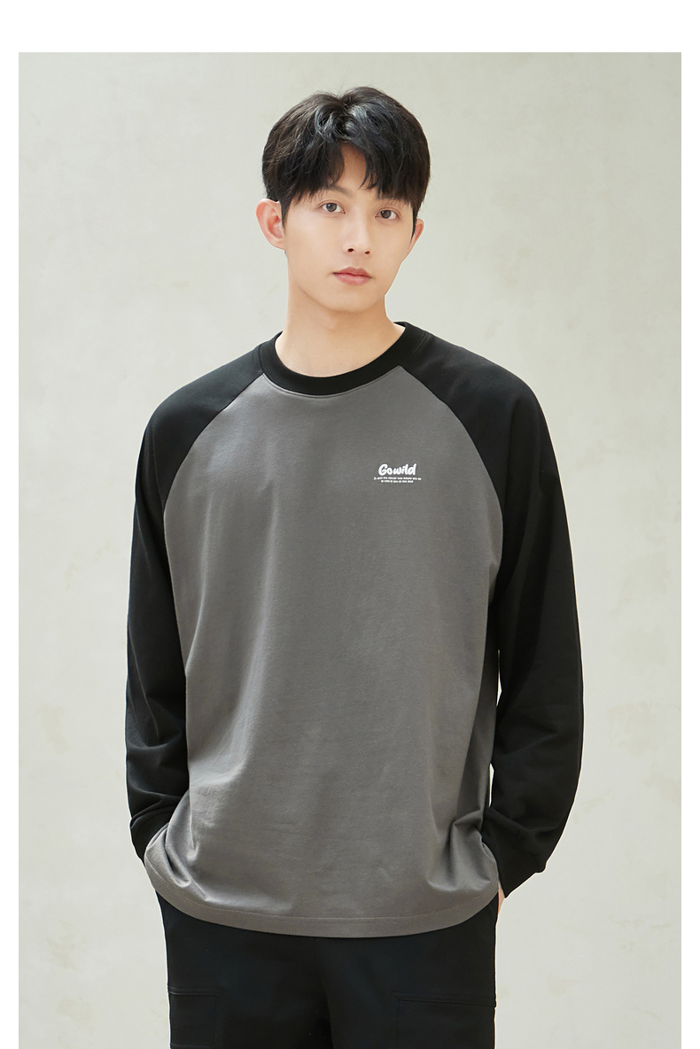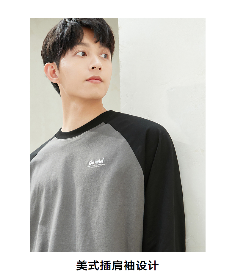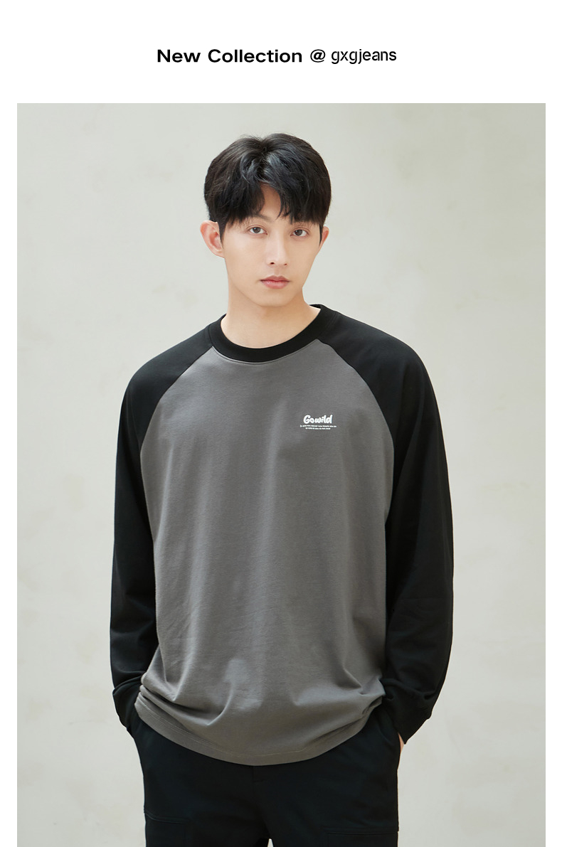 gxg.jeans男装秋季圆领插肩袖设计拼色长袖T恤JFD13400111
