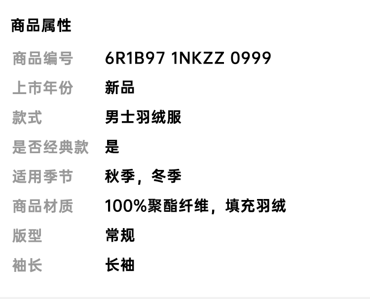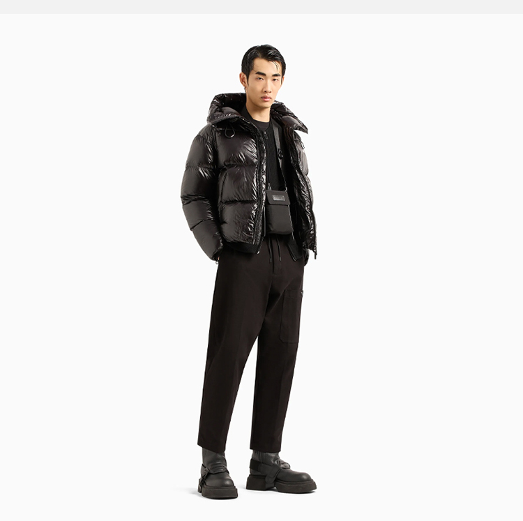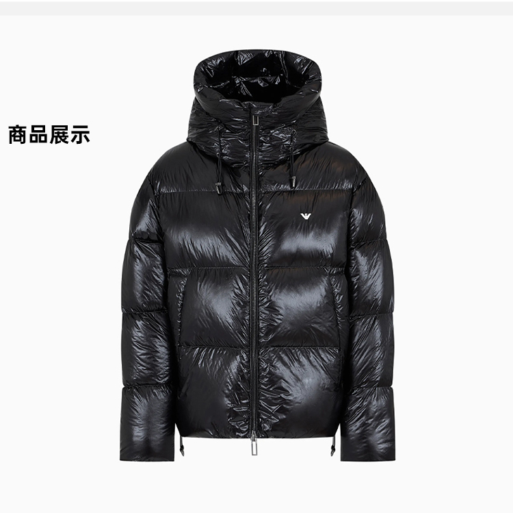 EMPORIO ARMANI 阿玛尼 男士防水绗缝尼龙连帽羽绒服 黑色 6R1B97 1NKZZ 0999