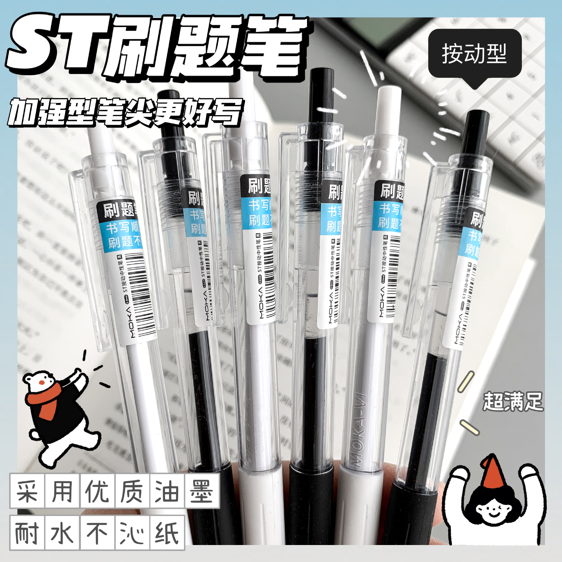「19.9到手4盒!共24支」ST头刷题小白笔 学生考试用 按压中性笔高颜值办公签字笔文具