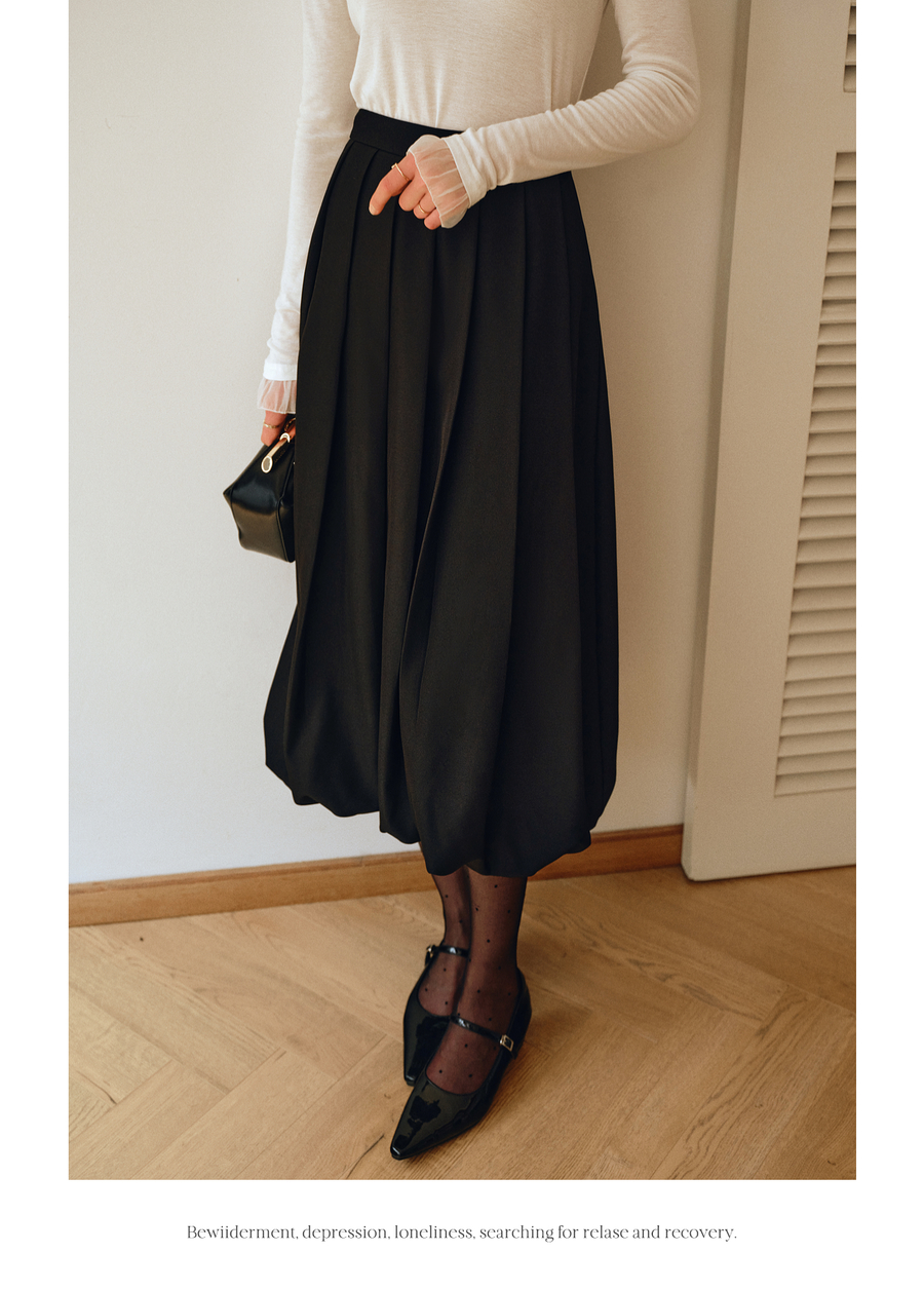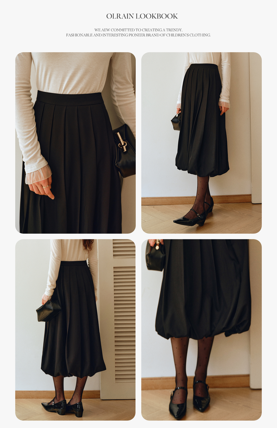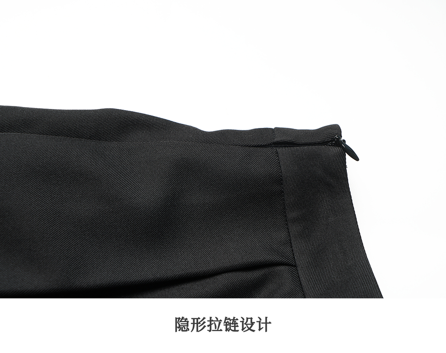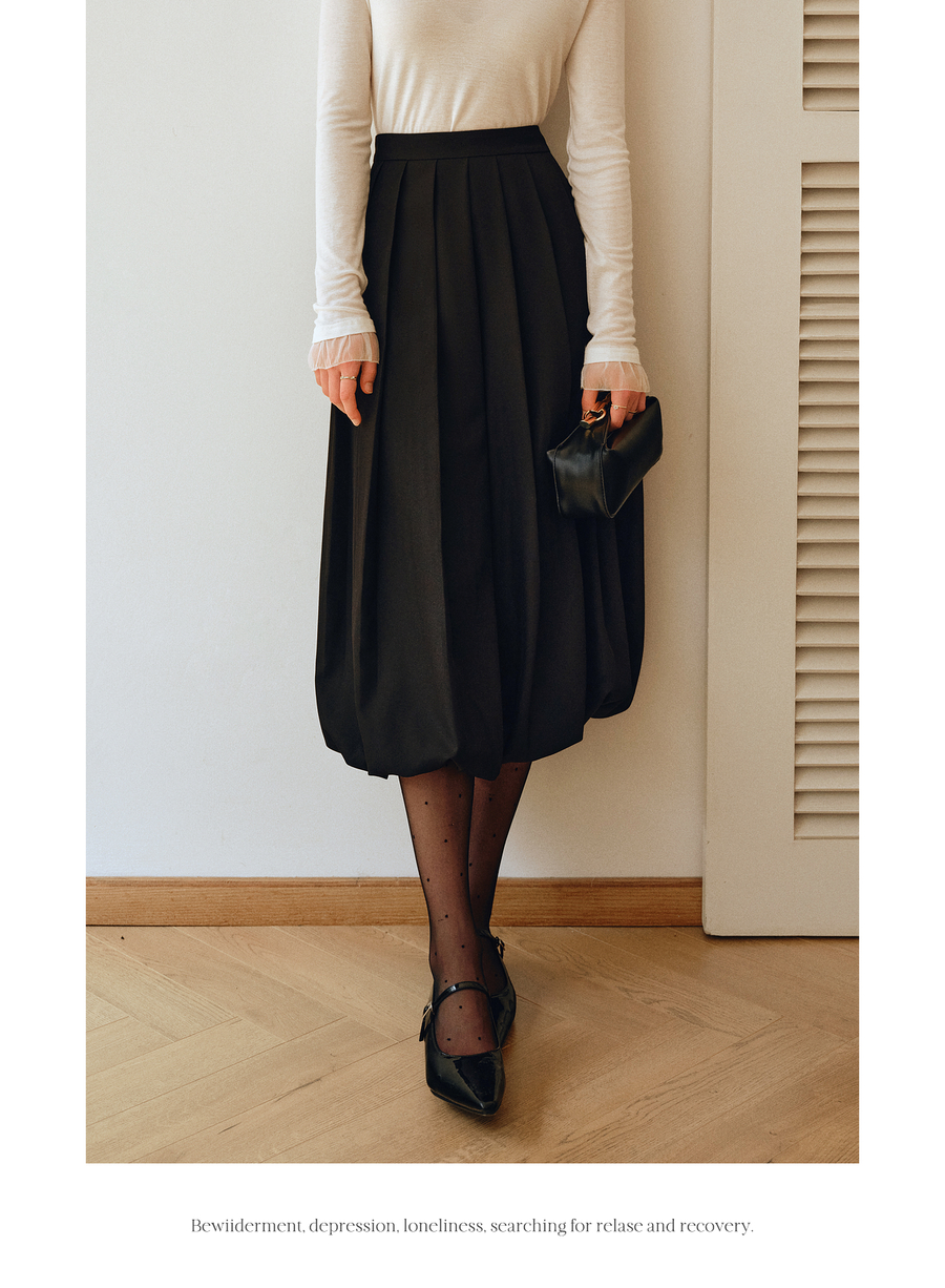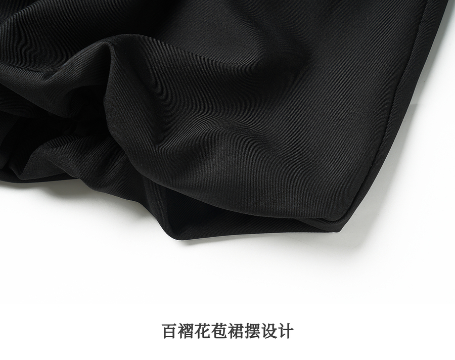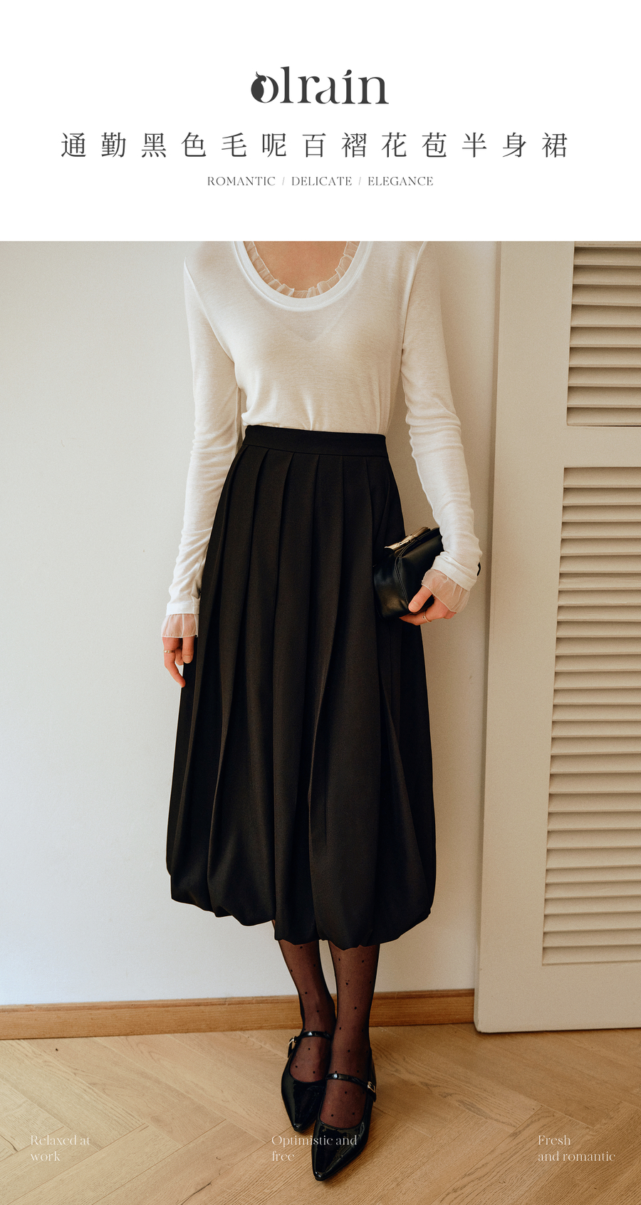 OLrain欧芮儿2025新款女秋季通勤黑色毛呢百褶花苞半身裙显瘦裙子