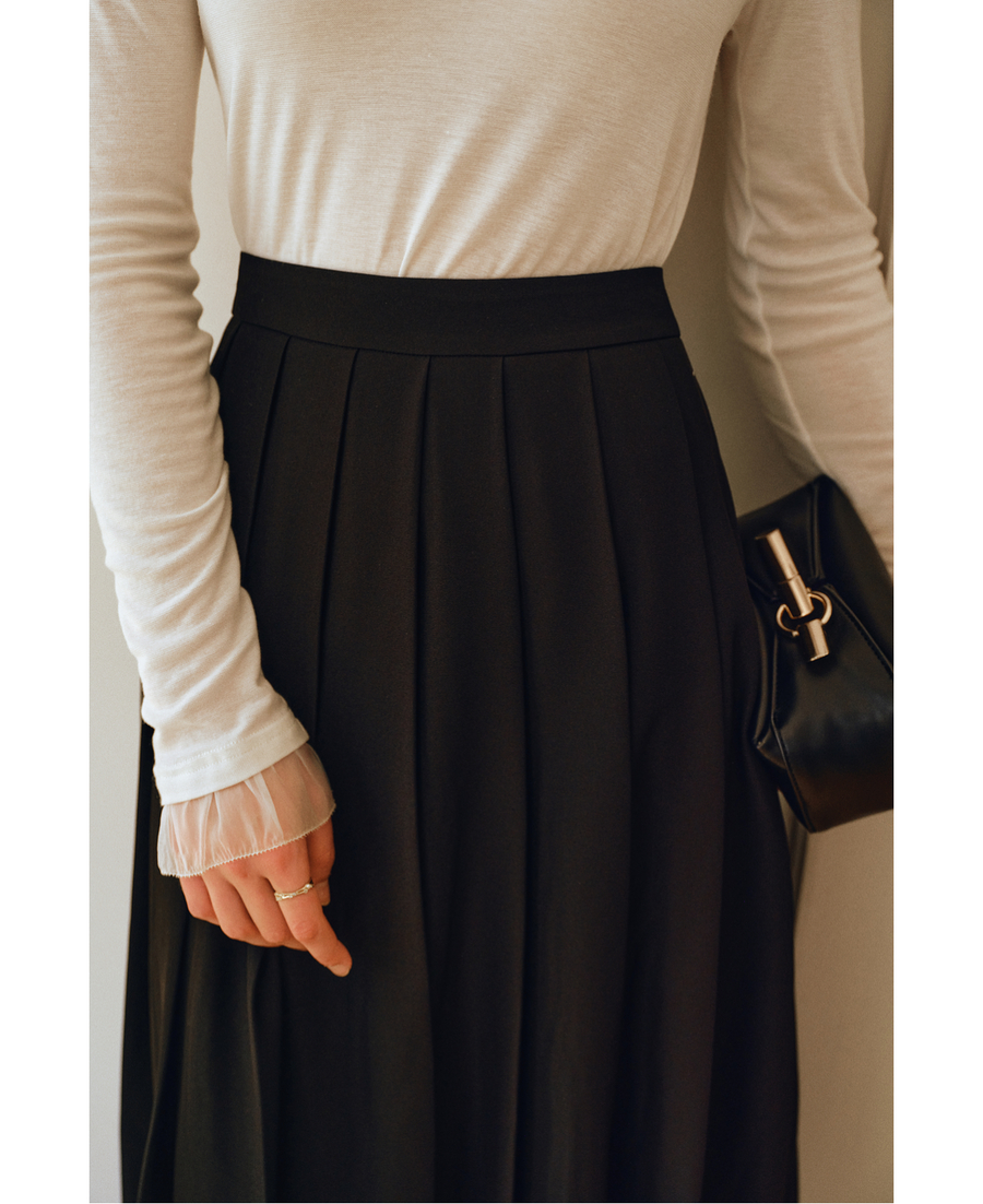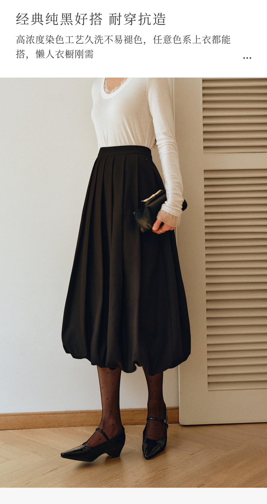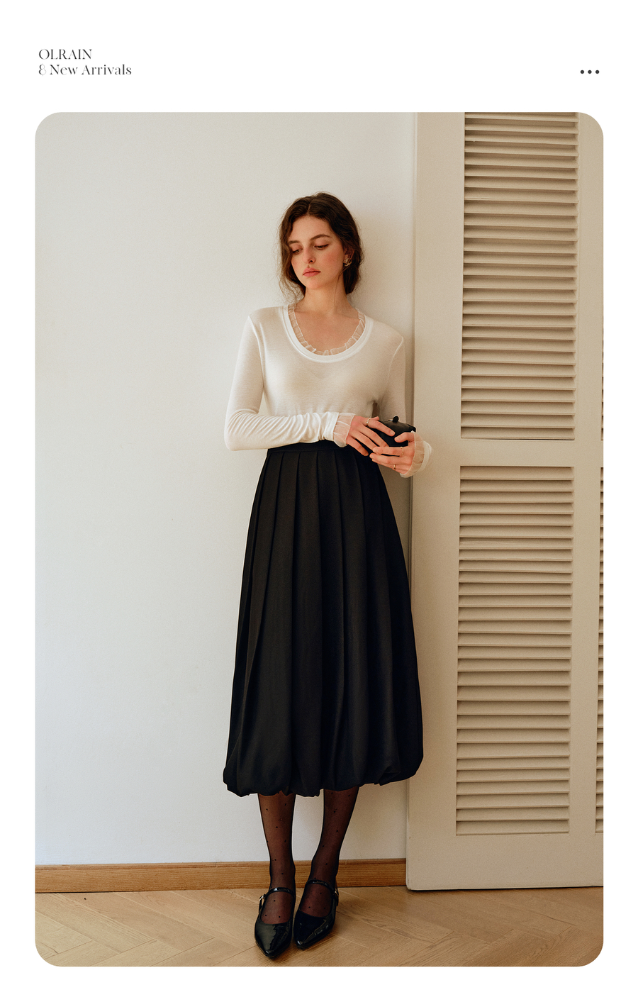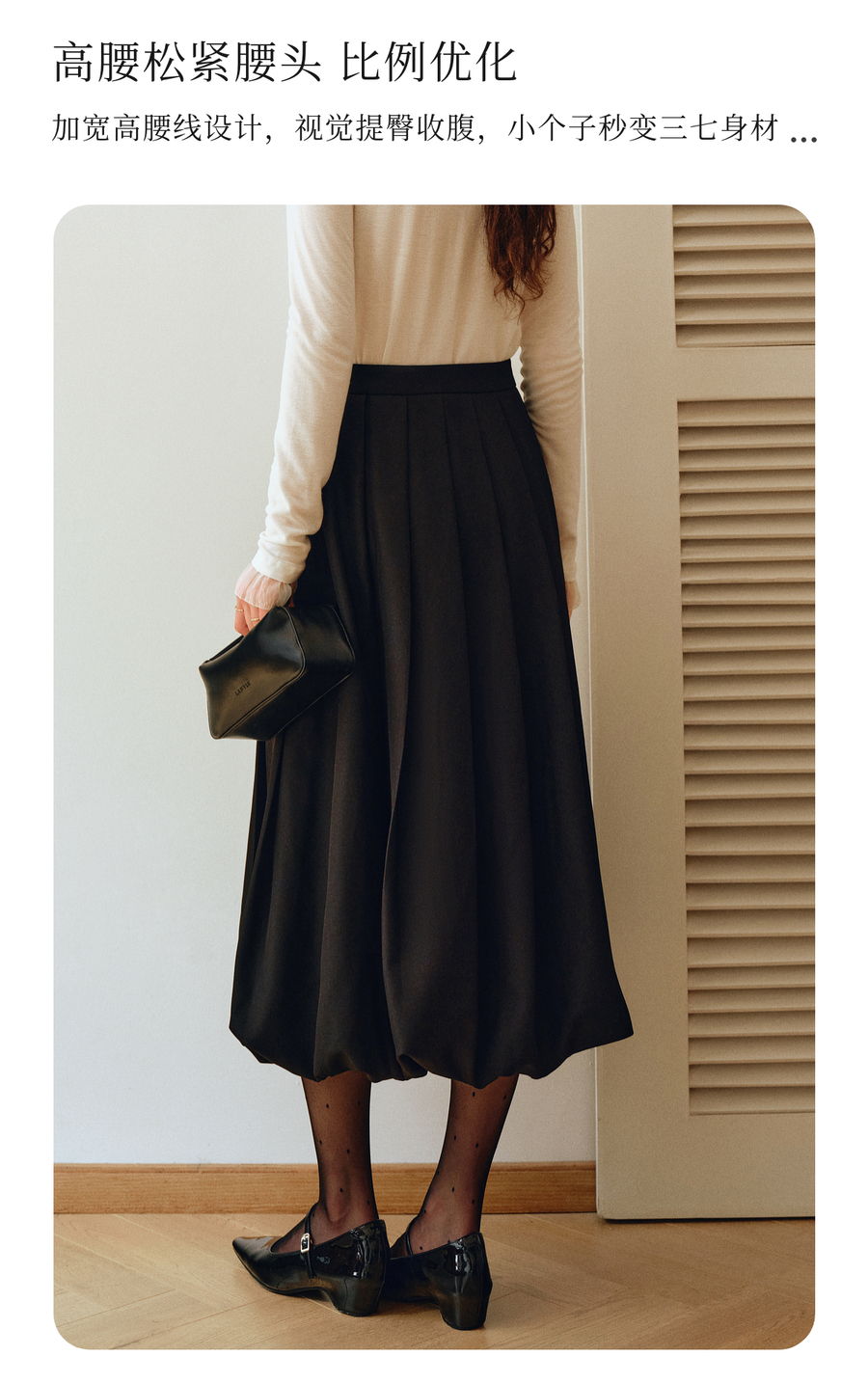 OLrain欧芮儿2025新款女秋季通勤黑色毛呢百褶花苞半身裙显瘦裙子