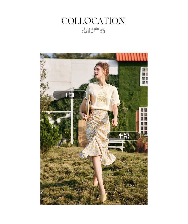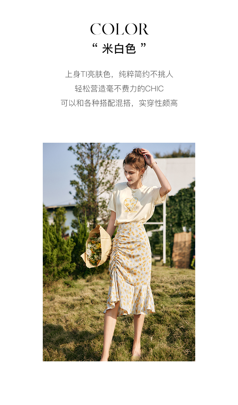 OLrain欧芮儿杏色肌理感面料圆领工艺短袖T恤女2025夏季新款上衣