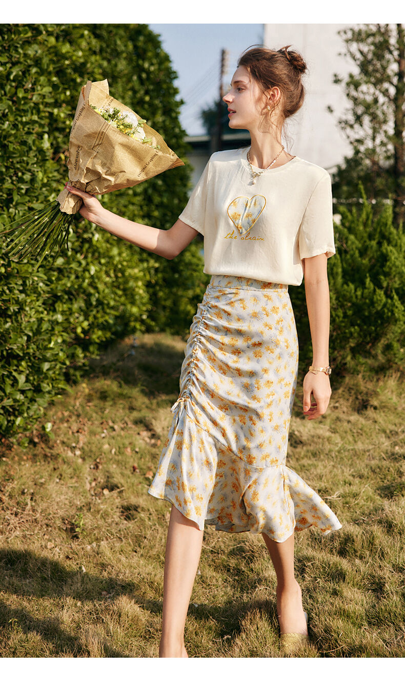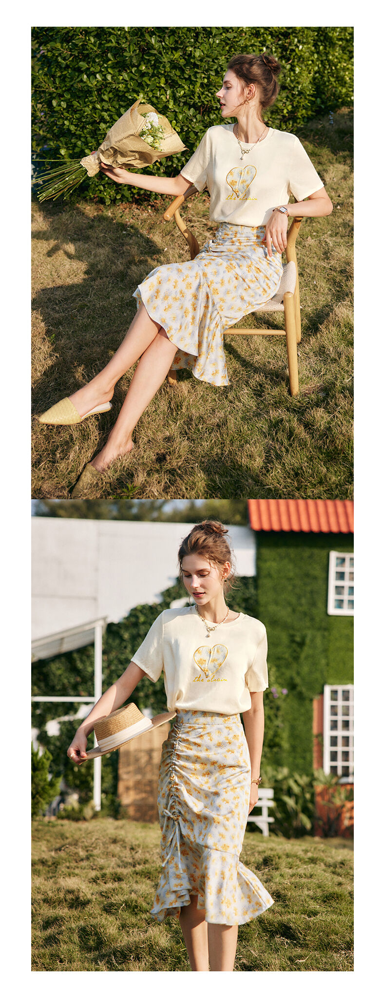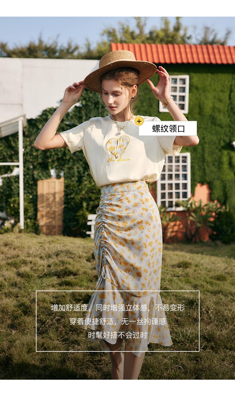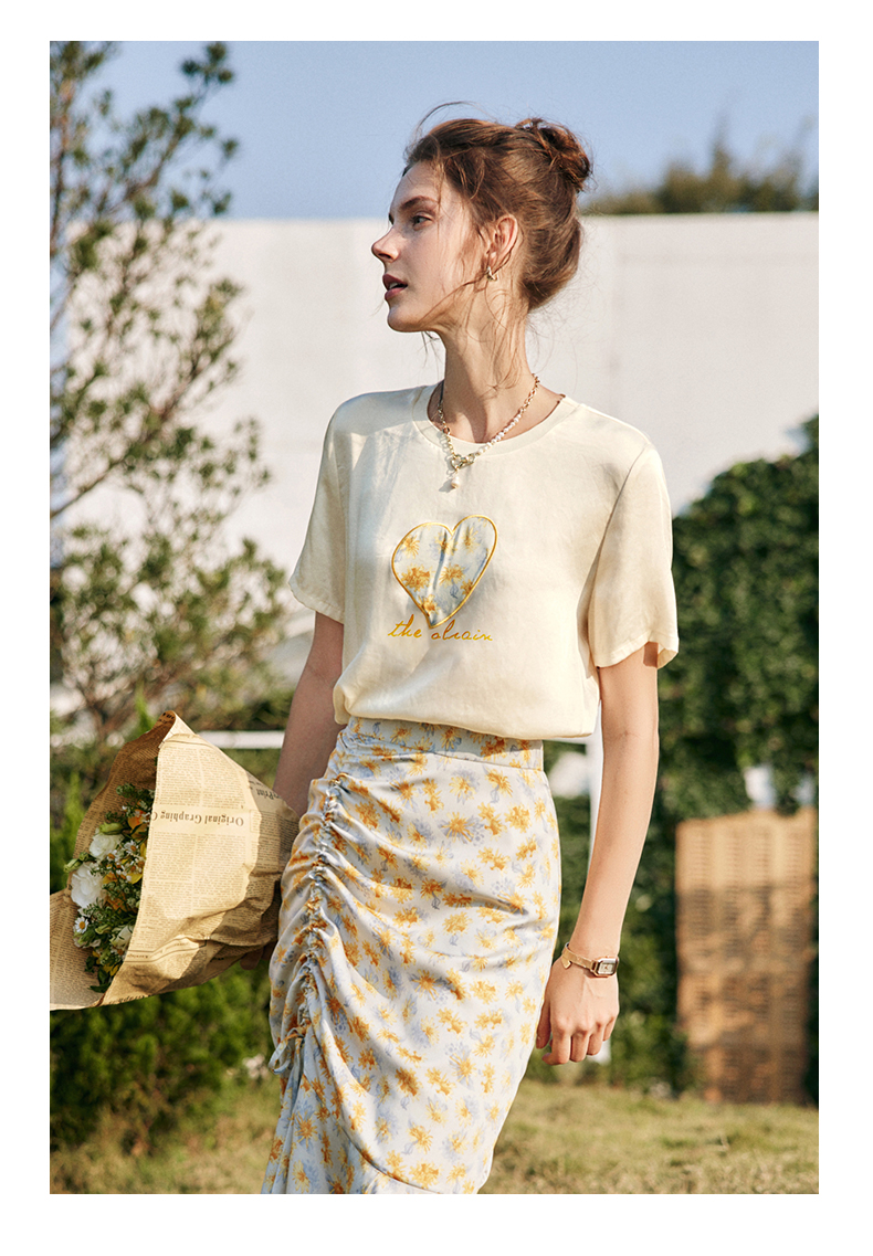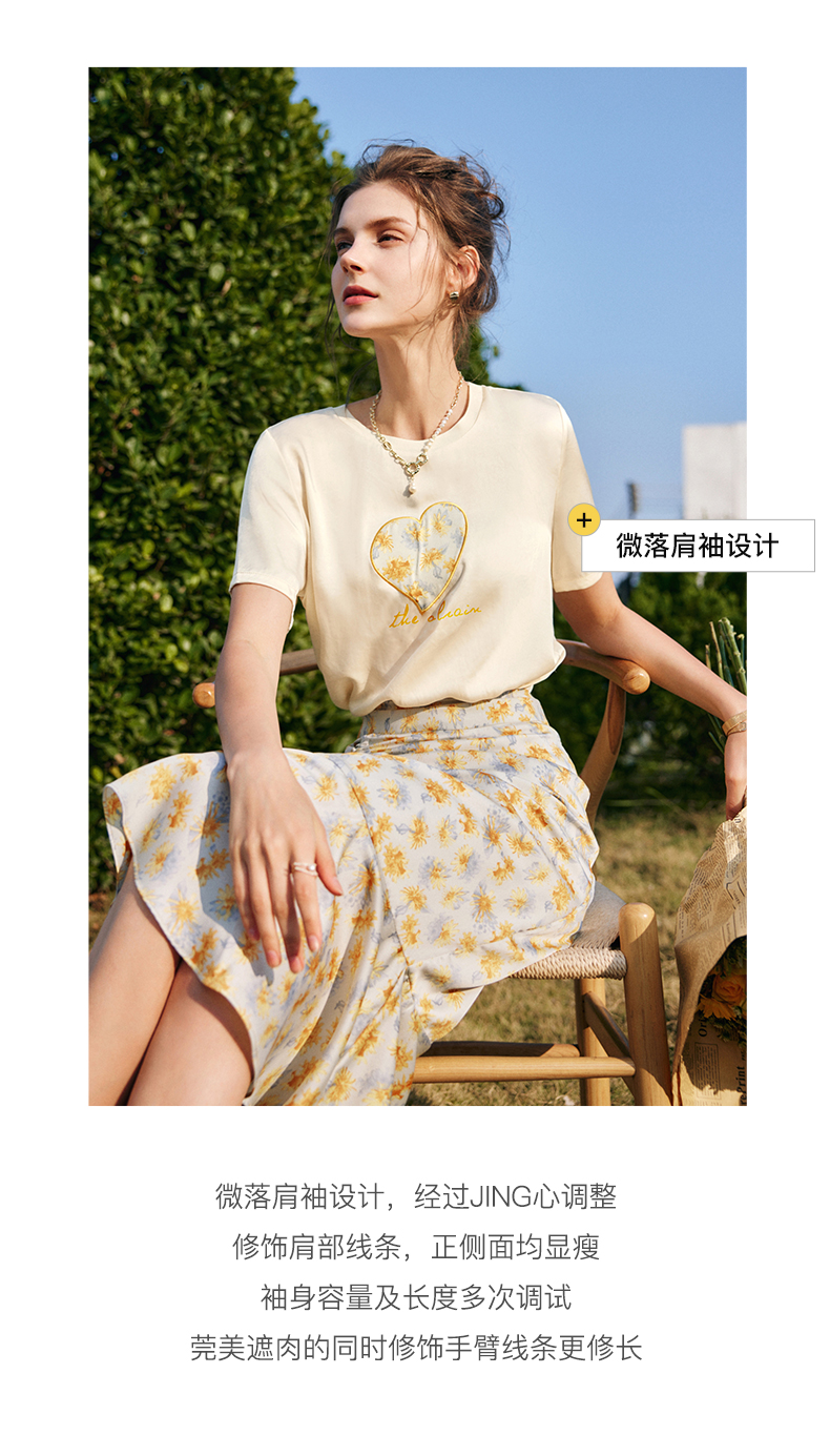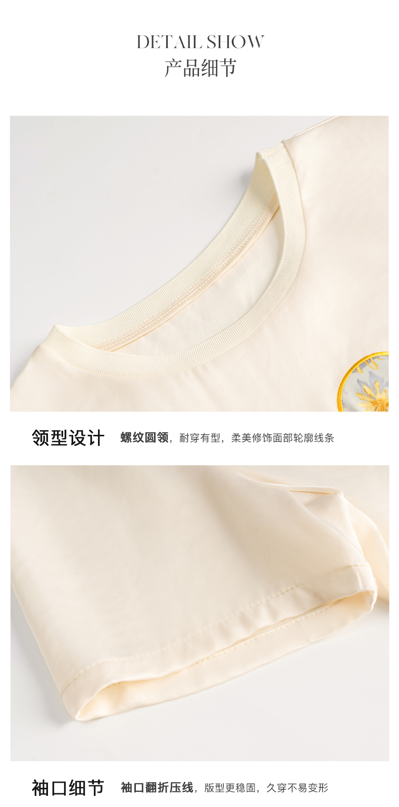 欧芮儿OLrain法式白色短袖t恤女夏季2022新款爱心刺绣缎面上衣
