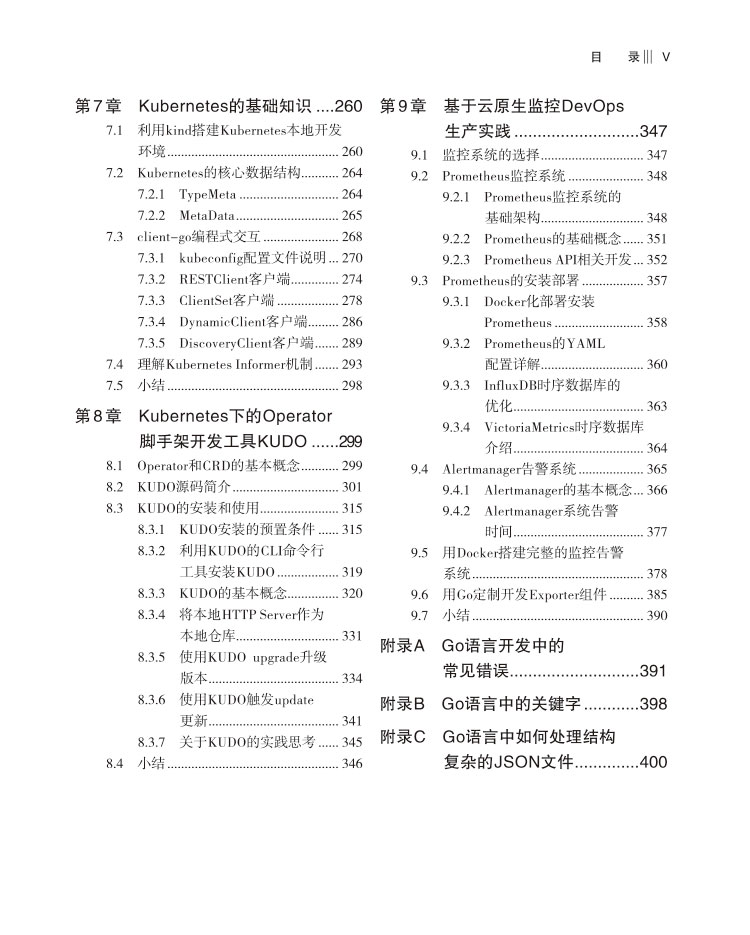 具KUDO;第9章介绍云原生监控DevOps实践。本书各章节的内容都是基于实践经验编写的。
