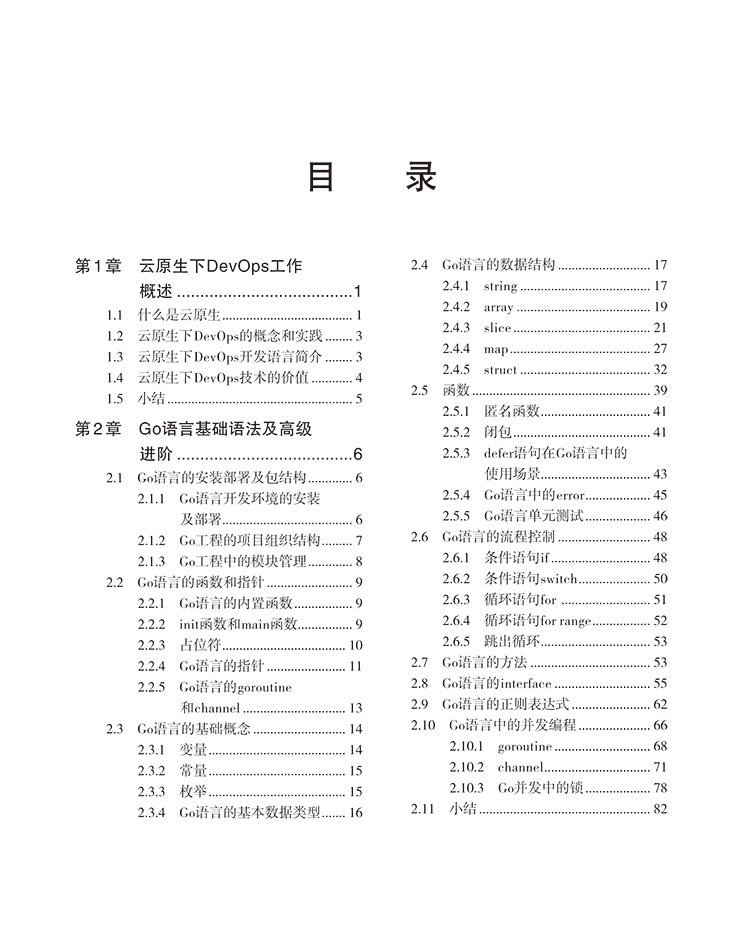 本书共分为9章,第1章主要介绍企业采用云原生下的DevOps进行开发的作用和意义;第2章介绍Go语