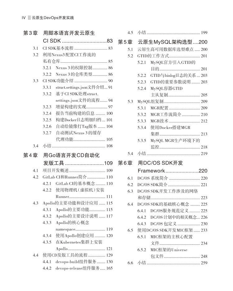 内容涉及Go语言开发);第3章介绍如何用脚本语言开发云原生CI SDK;第4章主要介绍如何利用Go语言开