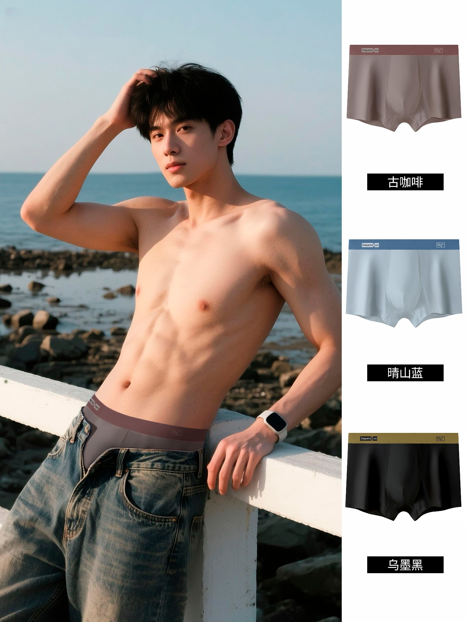 男士莫代尔明筋时尚平角内裤简约全年龄可穿6015