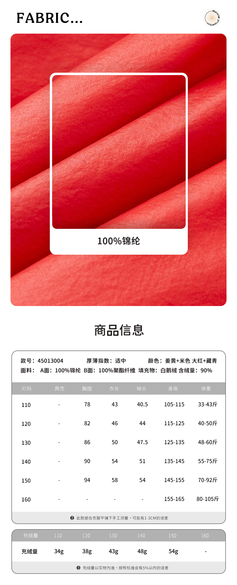 填充物: 白鹅绒